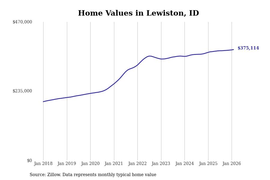Stacker compiled a list of cities with the most expensive homes in the Lewiston, ID-WA metro area using data from Zillow. Charts show the monthly typical home value since January 2018.