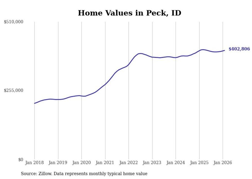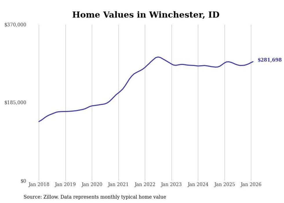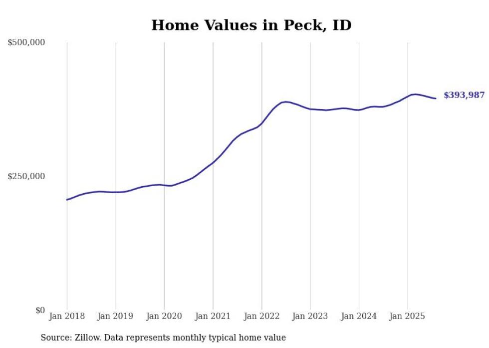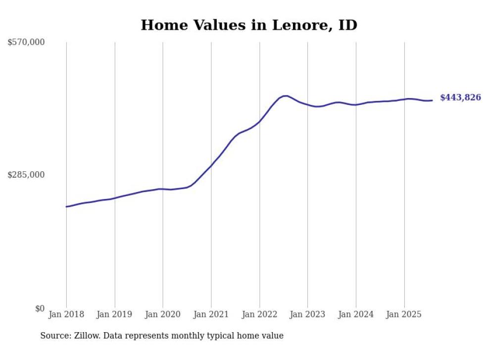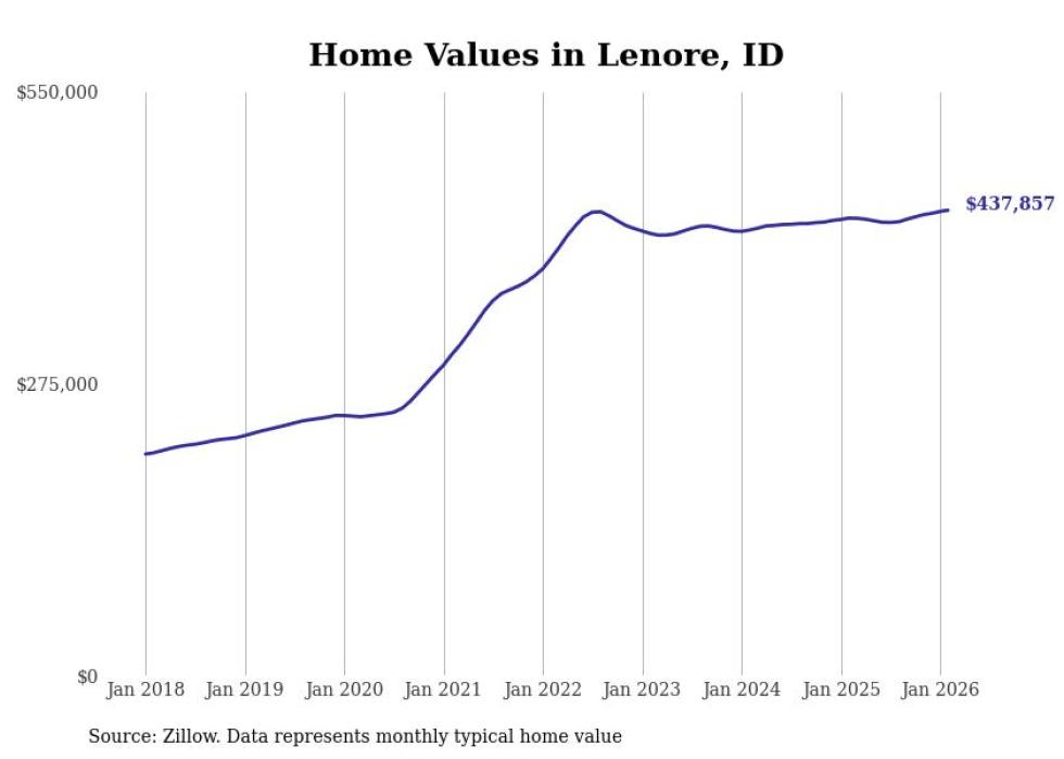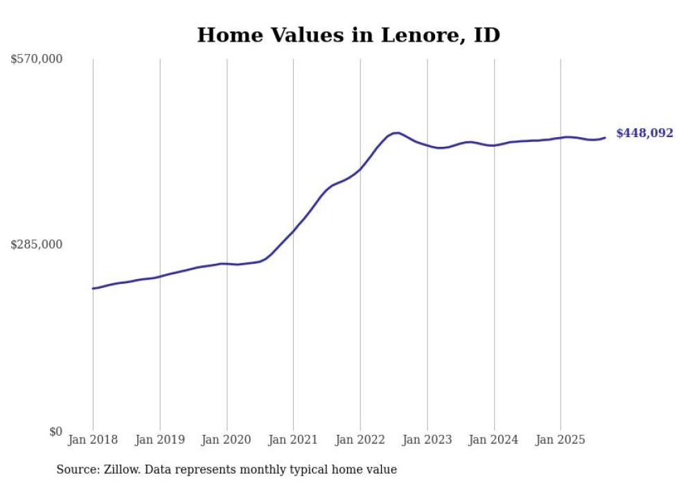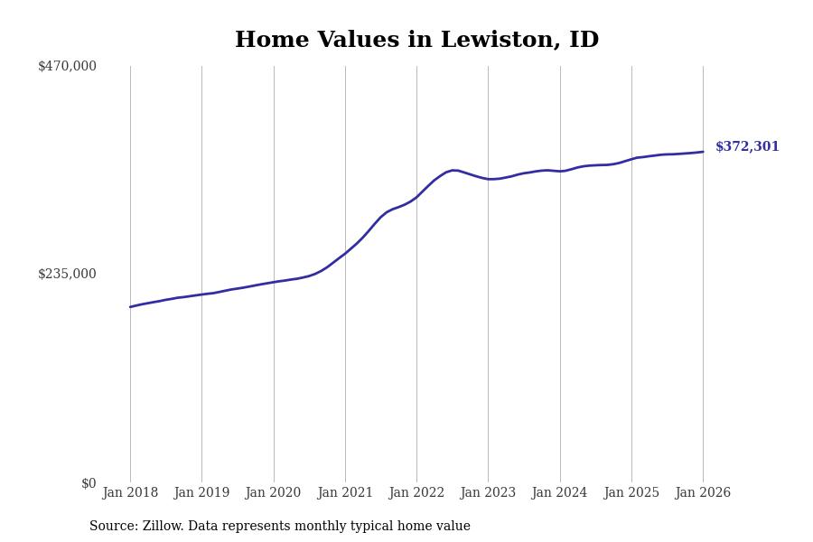 Stacker compiled a list of cities with the most expensive homes in the Lewiston metro area using data from Zillow. Charts show the monthly typical home value since January 2018. All 8 cities and towns with data available were included in the list.