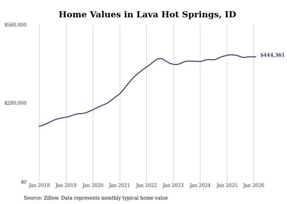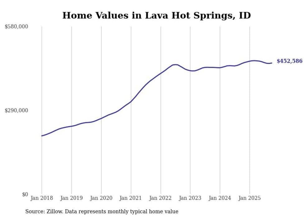 Stacker compiled a list of cities with the most expensive homes in the Pocatello, ID metro area using data from Zillow. Charts show the monthly typical home value since January 2018.