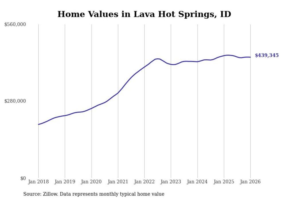 Stacker compiled a list of cities with the most expensive homes in the Pocatello metro area using data from Zillow. Charts show the monthly typical home value since January 2018. All 9 cities and towns with data available were included in the list.