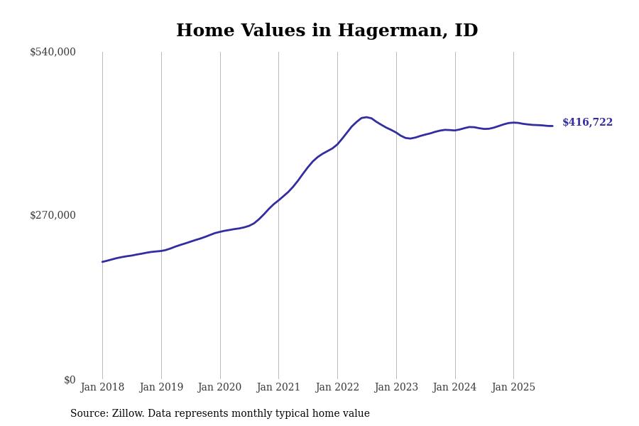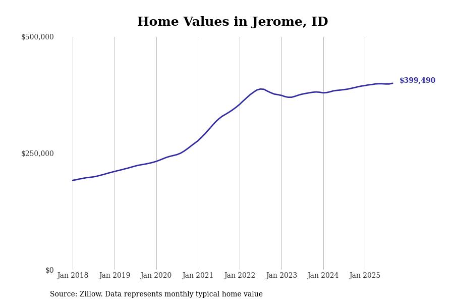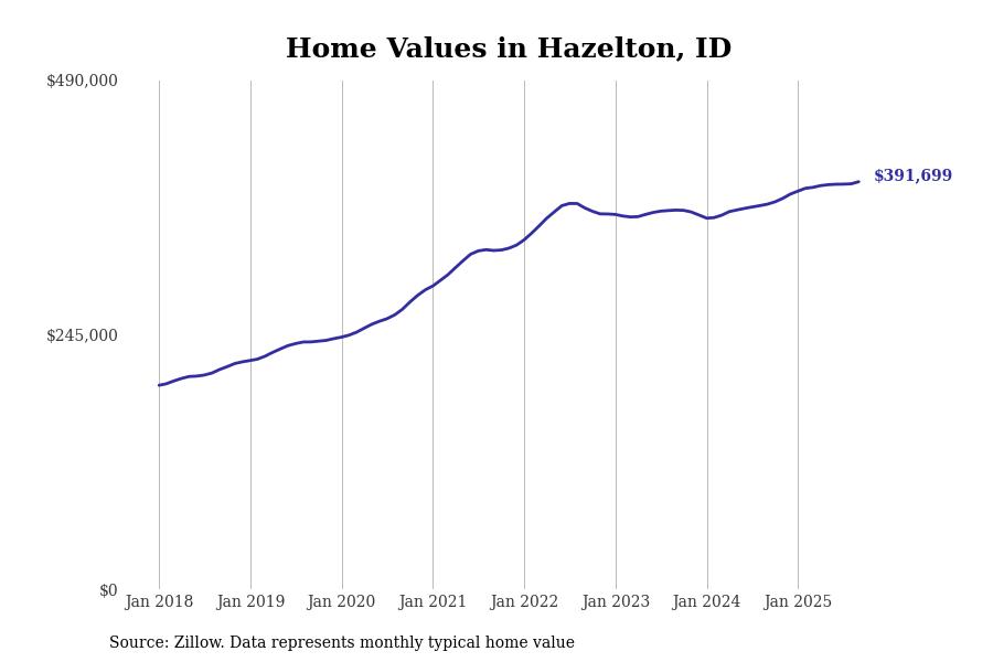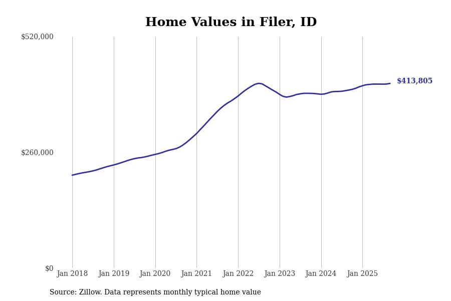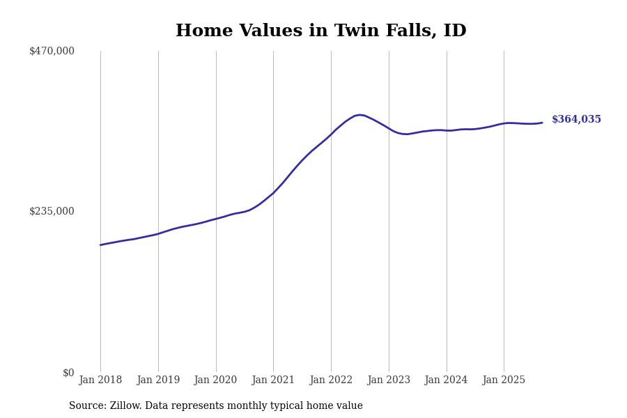 Stacker compiled a list of cities with the most expensive homes in the Twin Falls, ID metro area using data from Zillow. Charts show the monthly typical home value since January 2018.