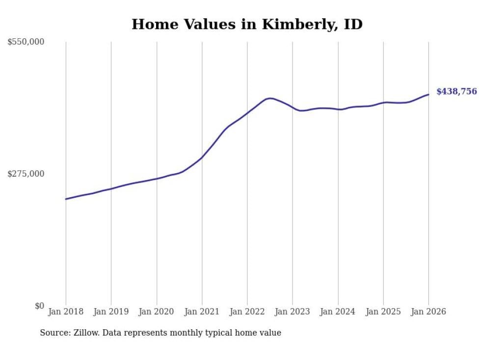 Stacker compiled a list of cities with the most expensive homes in the Twin Falls metro area using data from Zillow. Charts show the monthly typical home value since January 2018. All 10 cities and towns with data available were included in the list.