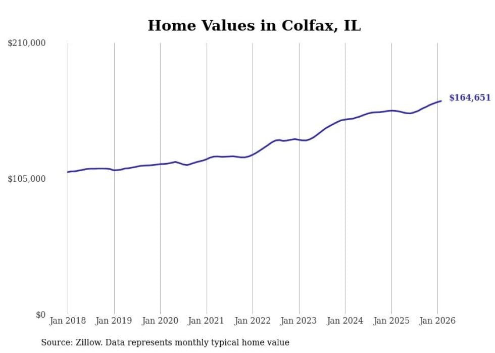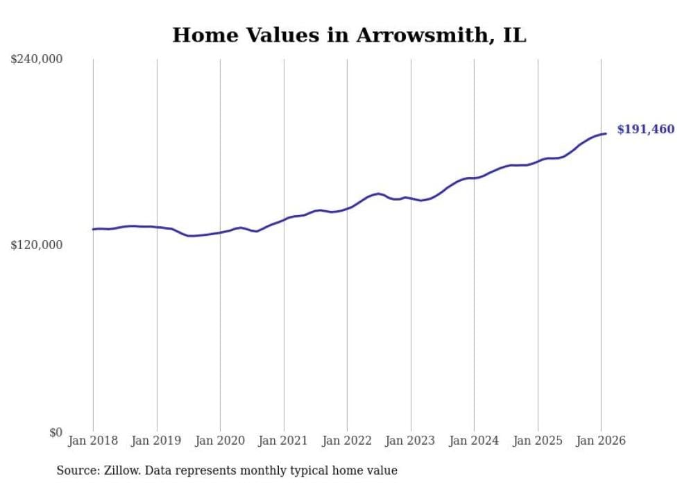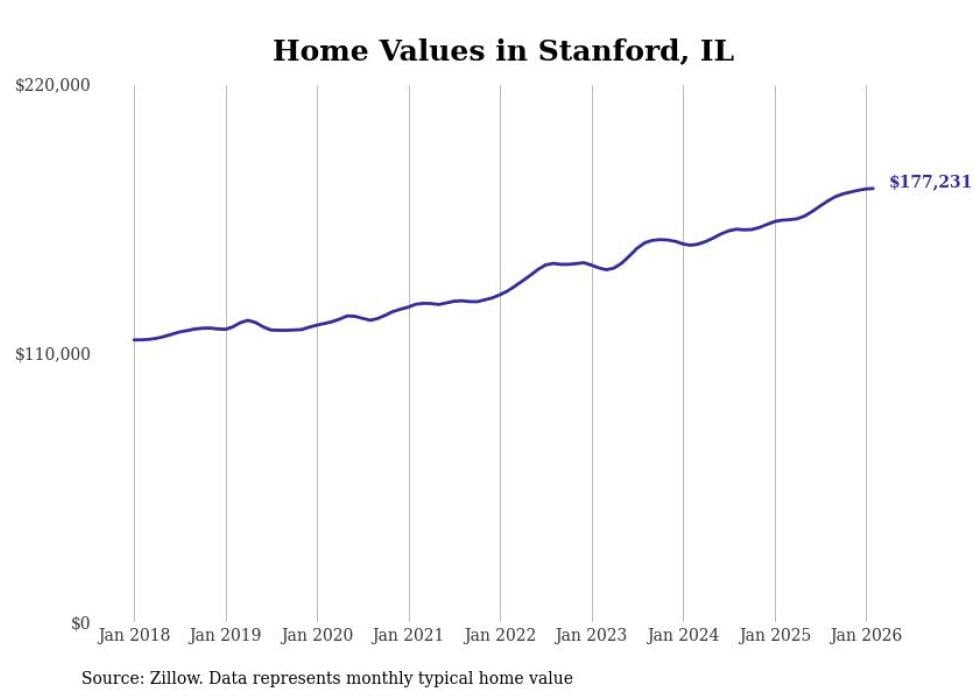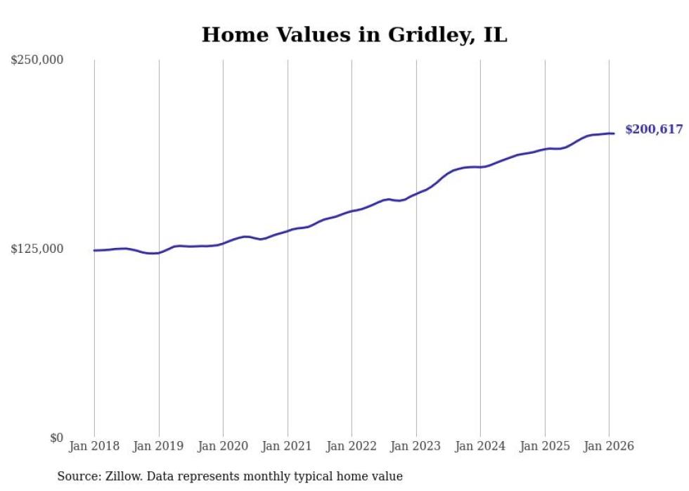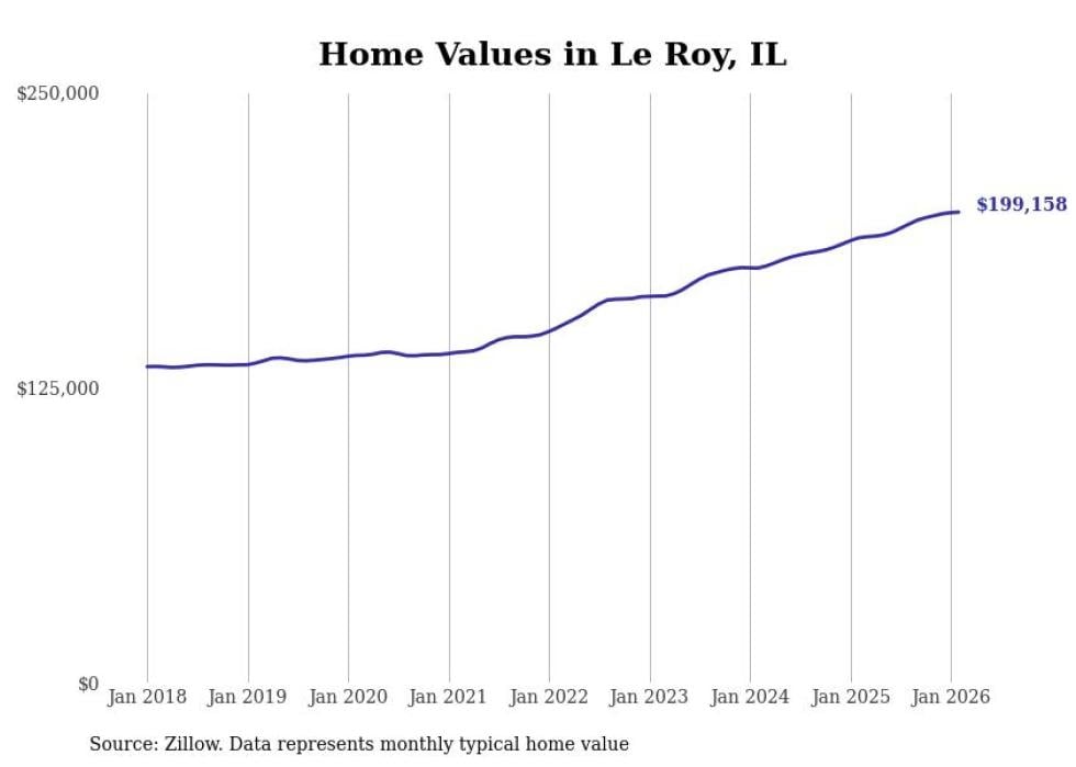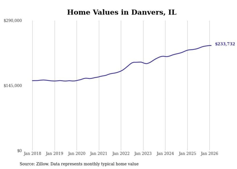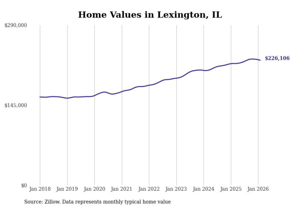 Stacker compiled a list of cities with the most expensive homes in the Bloomington, IL metro area using data from Zillow. Charts show the monthly typical home value since January 2018.