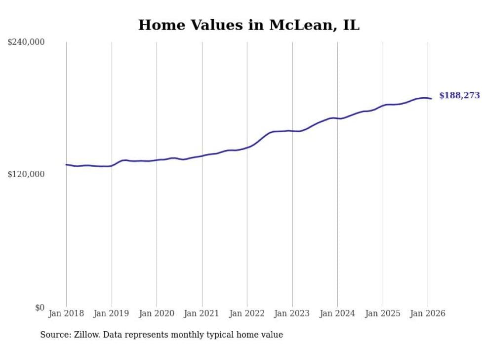 Cities with the fastest-growing home prices in the Bloomington, Illinois metro area