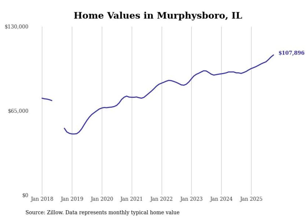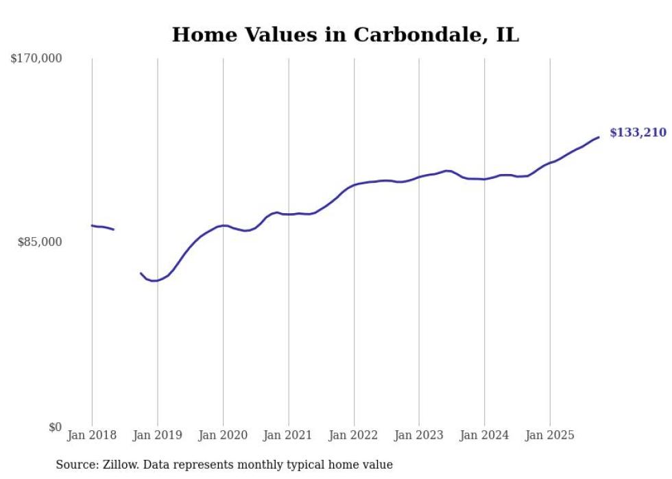 Cities with the fastest-growing home prices in the Carbondale metro area