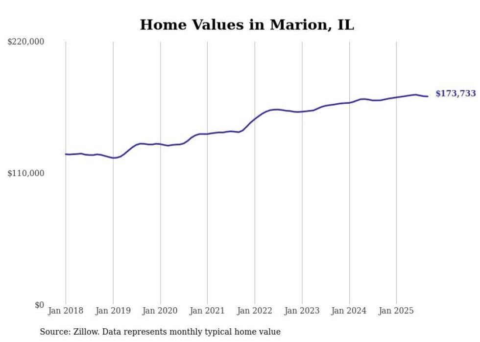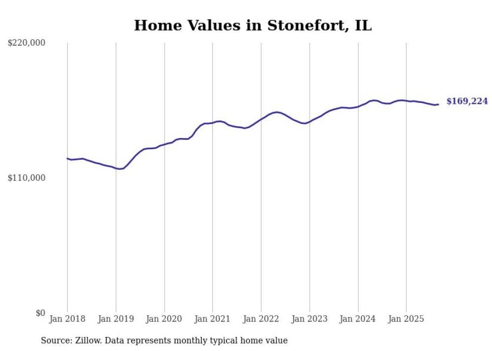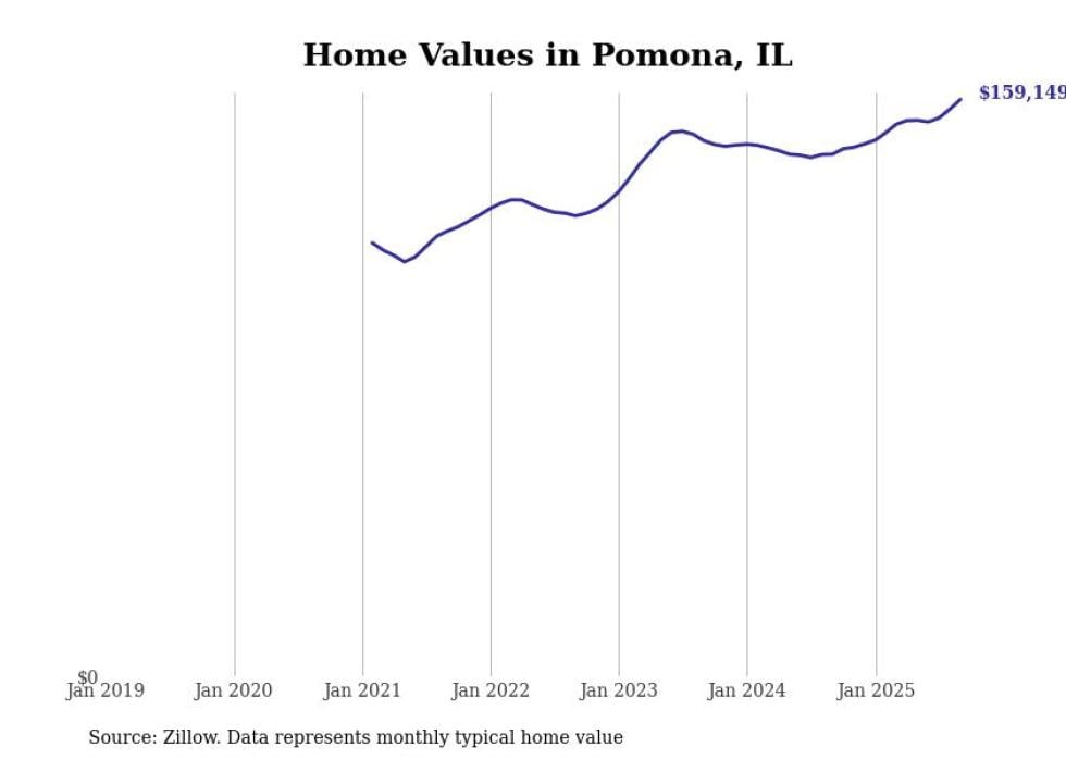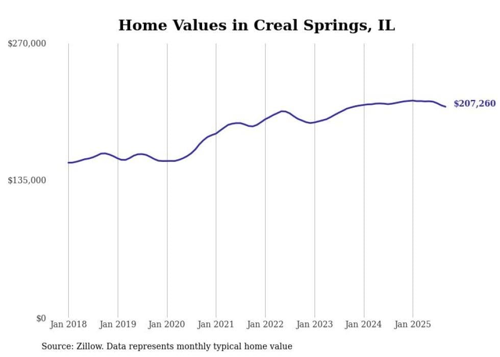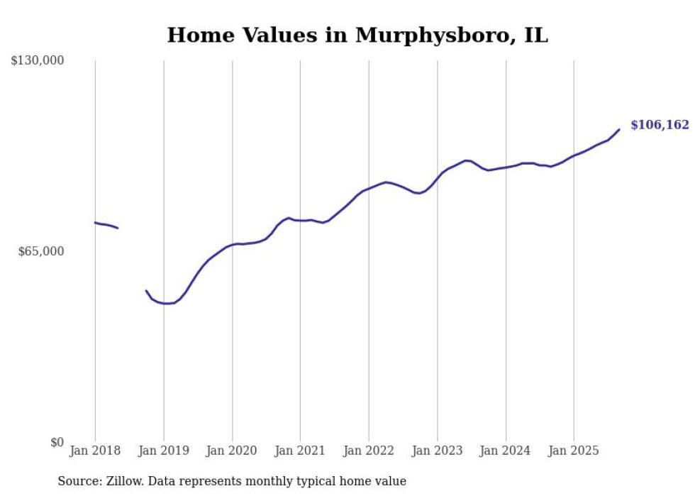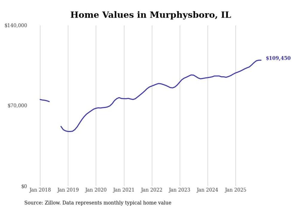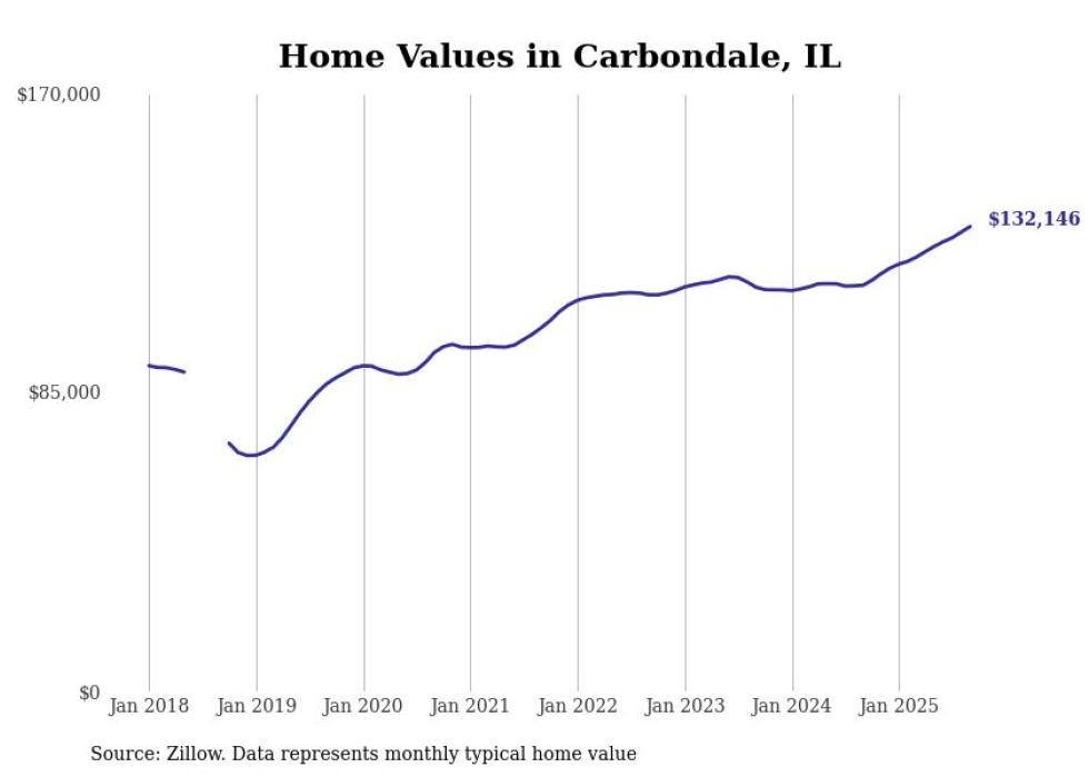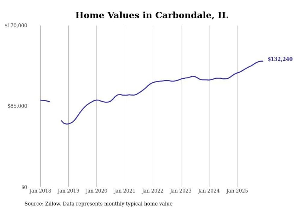Stacker compiled a list of cities with the most expensive homes in the Carbondale metro area using data from Zillow. Charts show the monthly typical home value since January 2018. All 28 cities and towns with data available were included in the list.