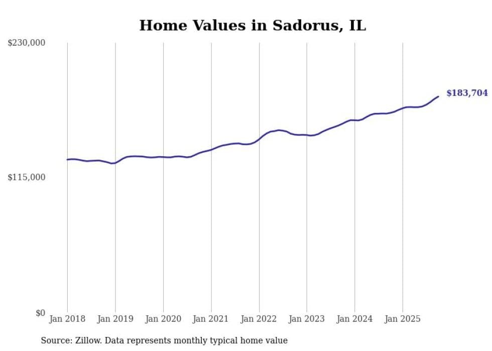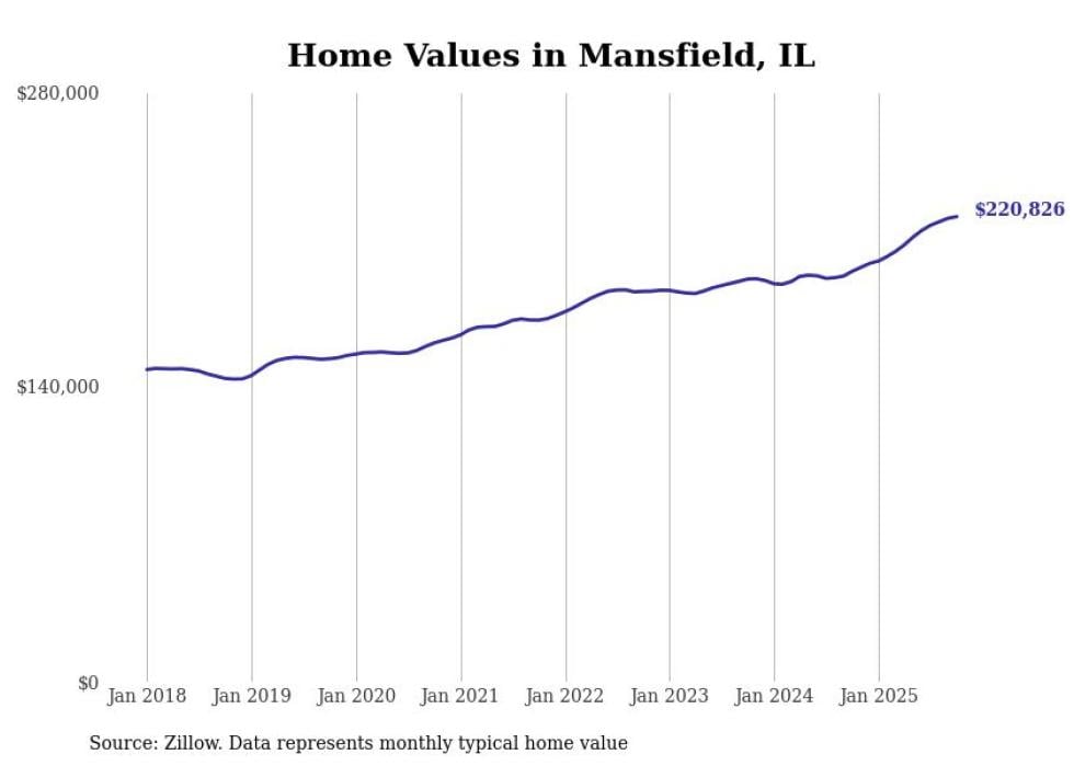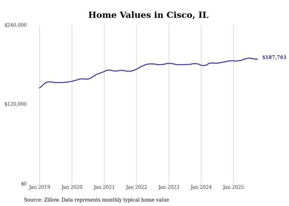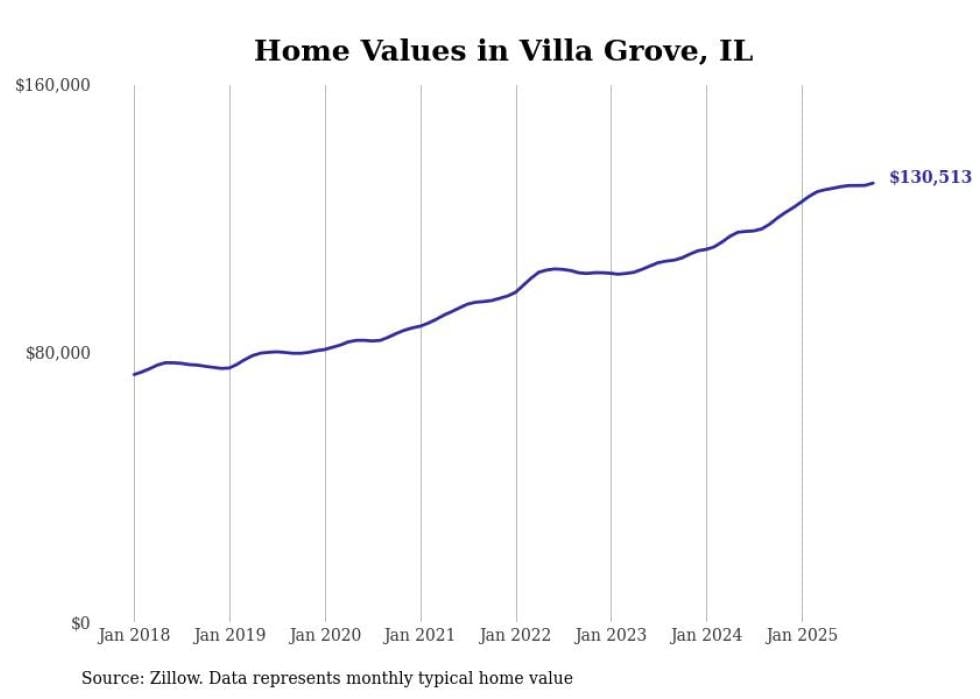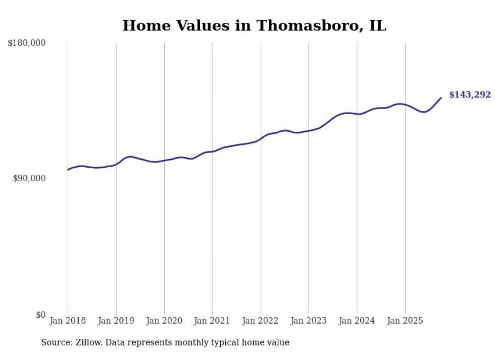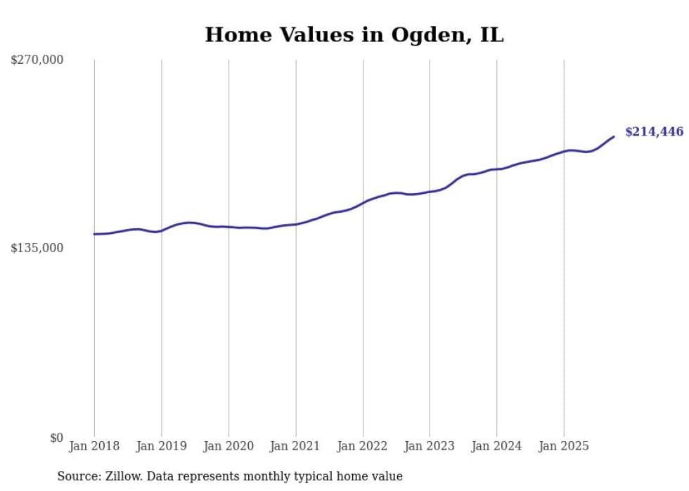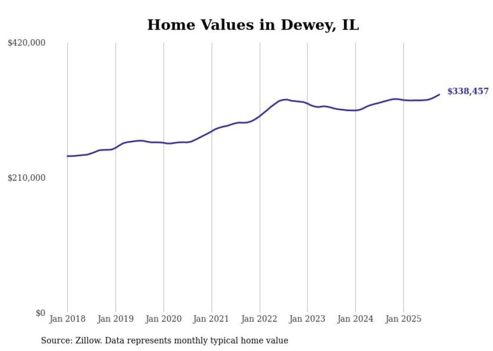 Stacker compiled a list of cities with the most expensive homes in the Champaign-Urbana, IL metro area using data from Zillow. Charts show the monthly typical home value since January 2018.