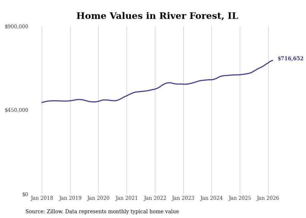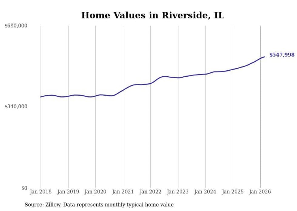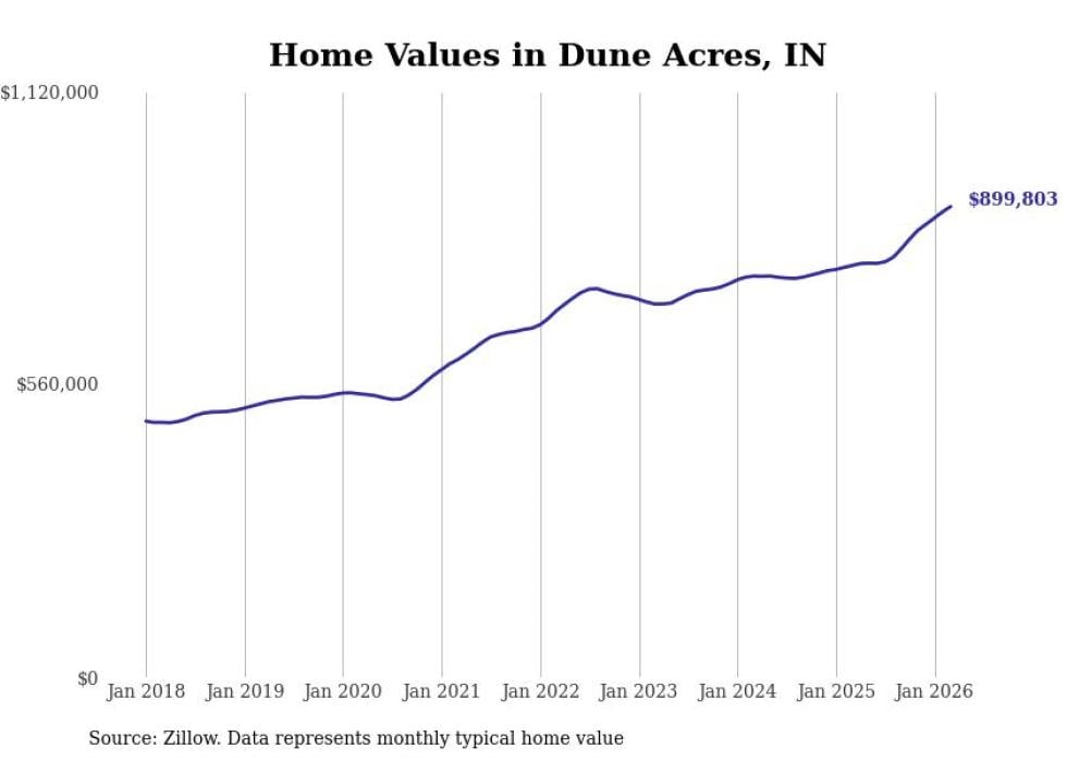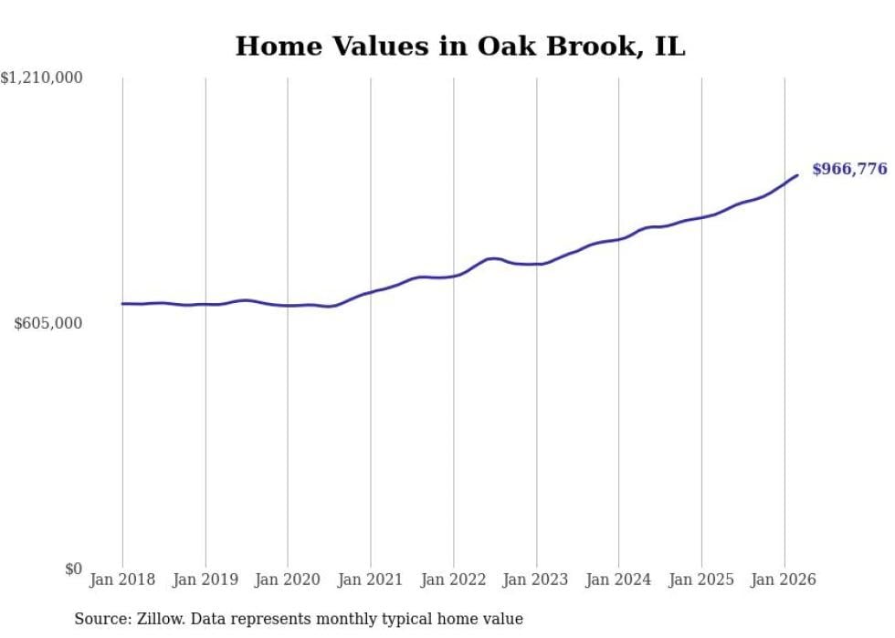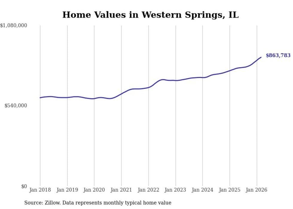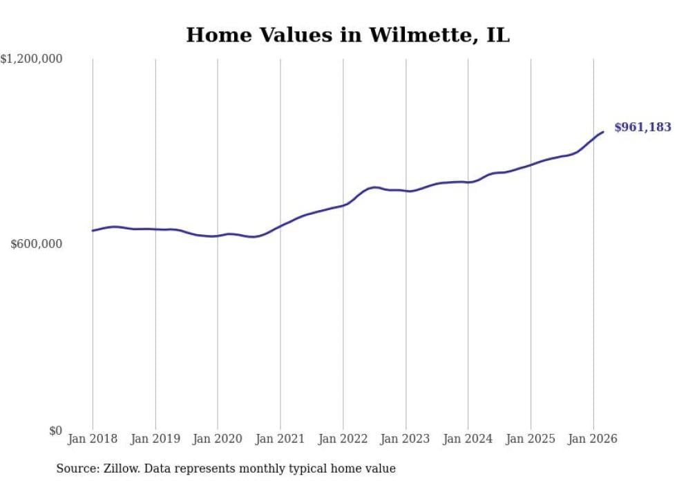 Stacker compiled a list of cities with the most expensive homes in the Chicago-Naperville-Elgin, IL-IN-WI metro area using data from Zillow. Charts show the monthly typical home value since January 2018.