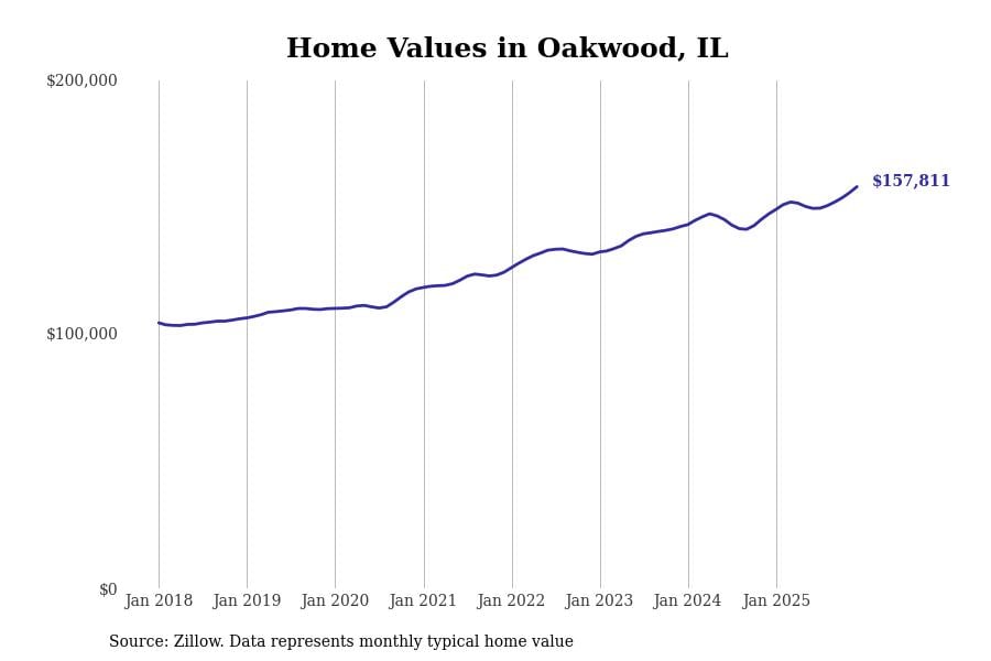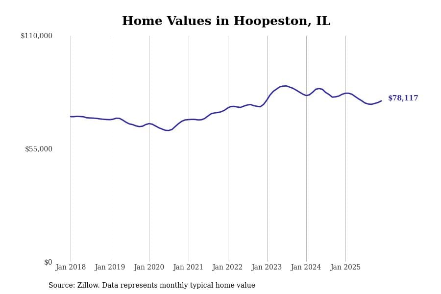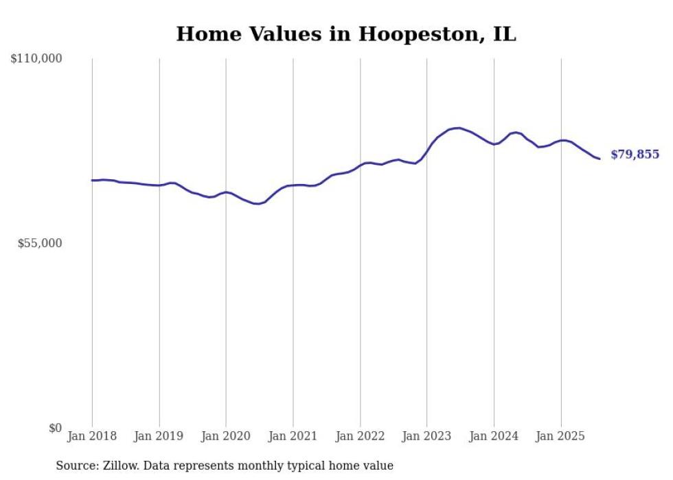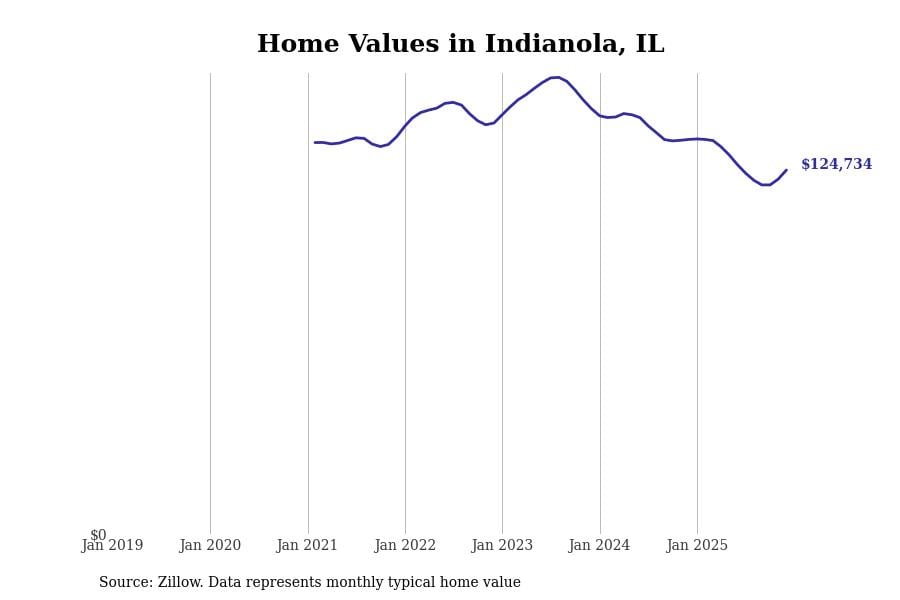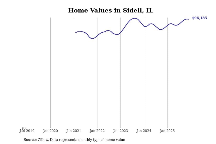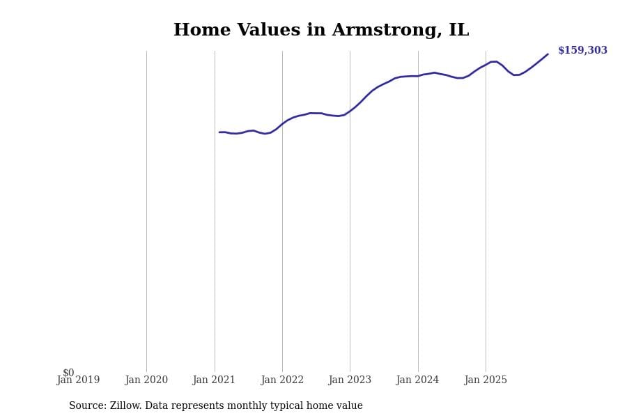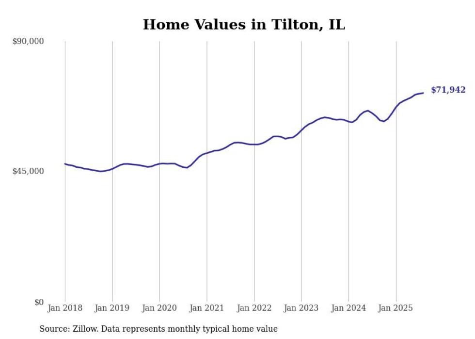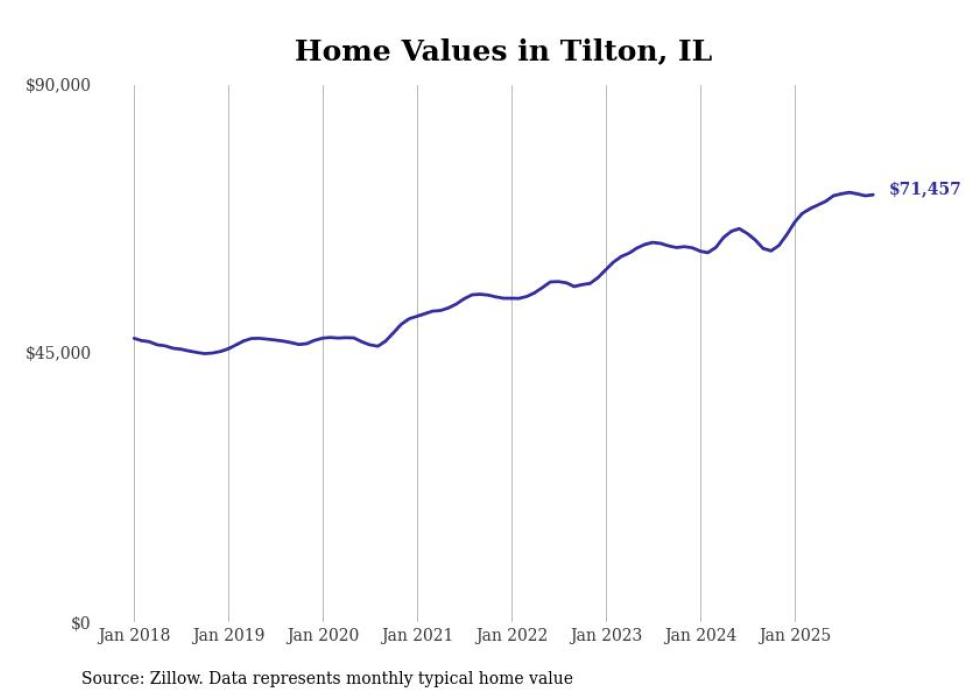 Stacker compiled a list of cities with the most expensive homes in the Danville, IL metro area using data from Zillow. Charts show the monthly typical home value since January 2018.