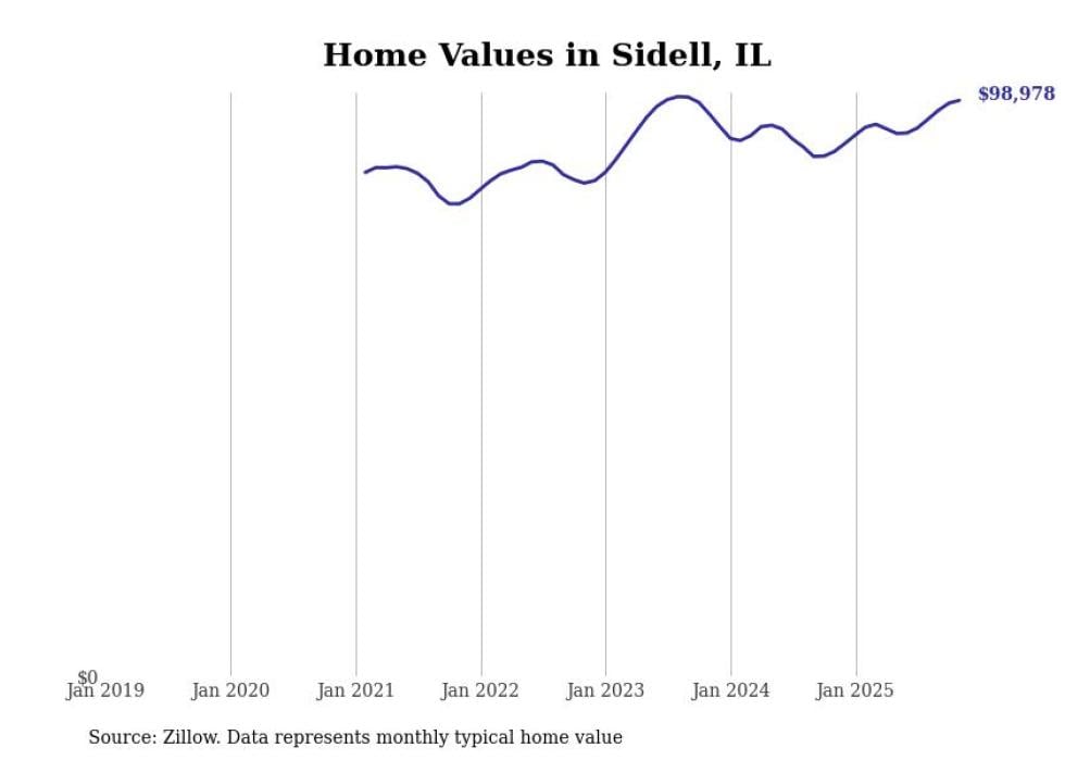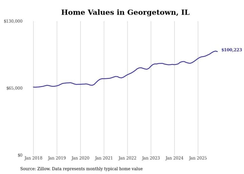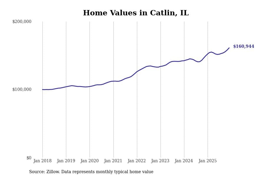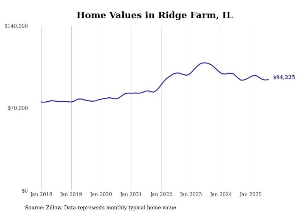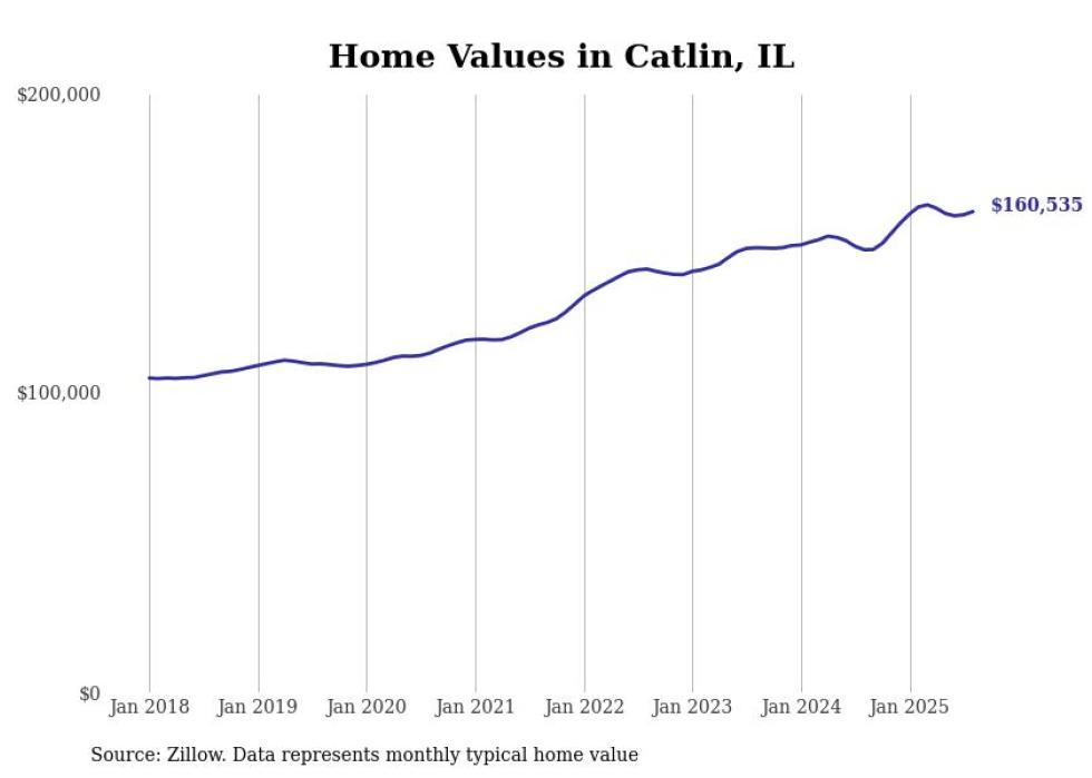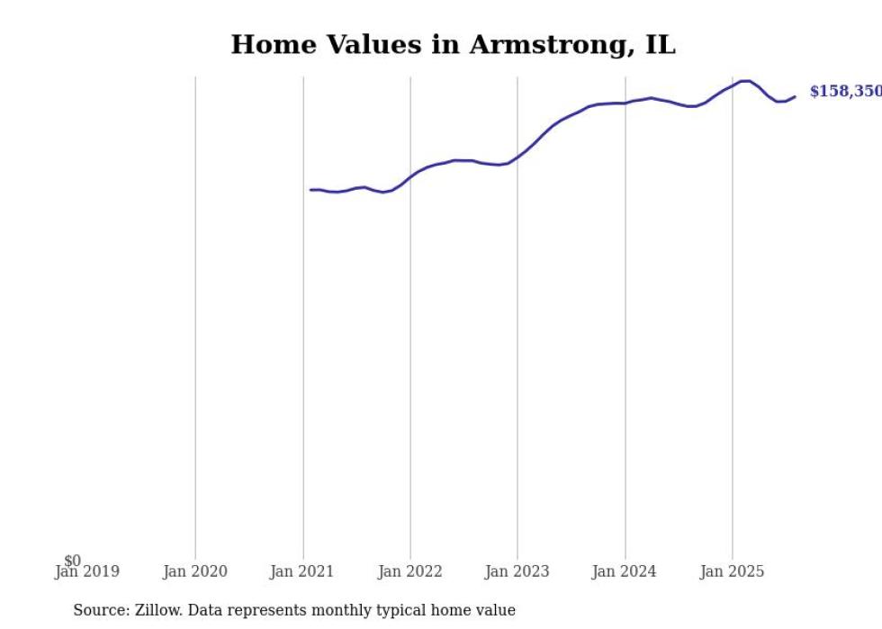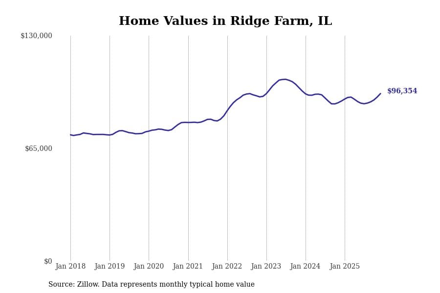 Stacker compiled a list of cities with the most expensive homes in the Danville, IL metro area using data from Zillow. Charts show the monthly typical home value since January 2018.