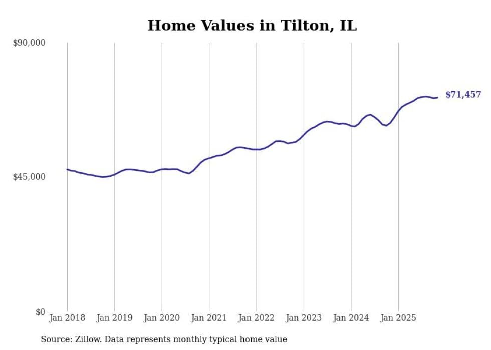 Stacker compiled a list of cities with the most expensive homes in the Danville metro area using data from Zillow. Charts show the monthly typical home value since January 2018. All 18 cities and towns with data available were included in the list.