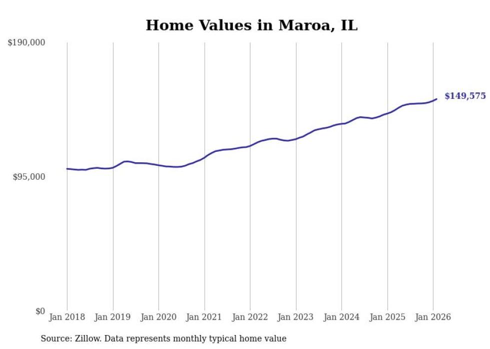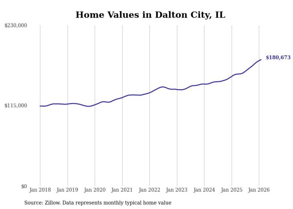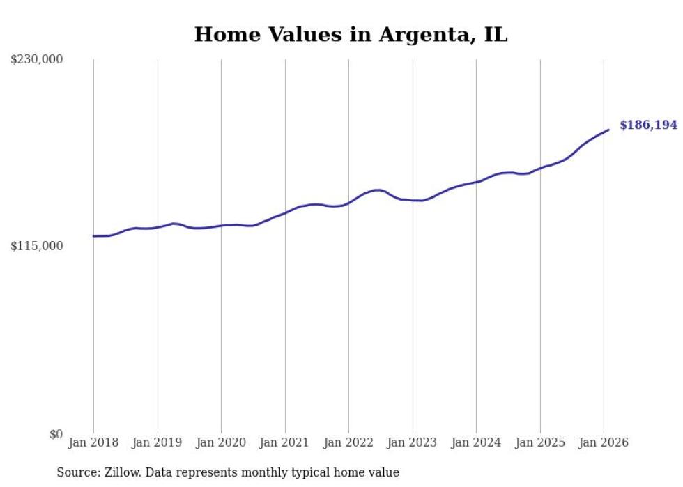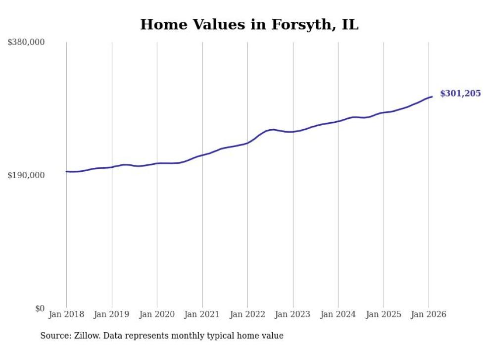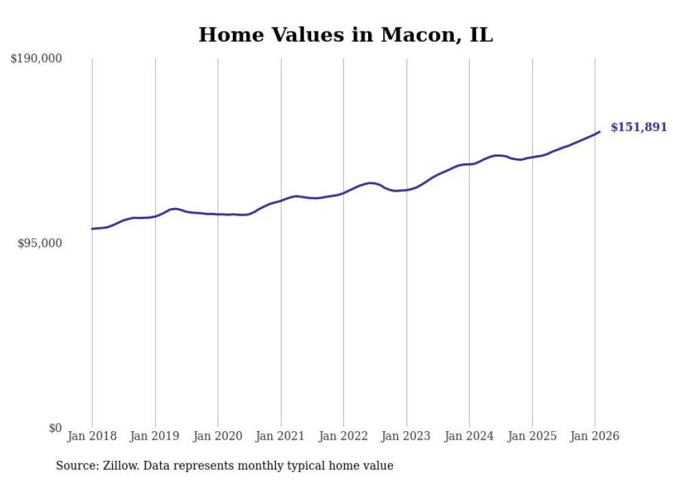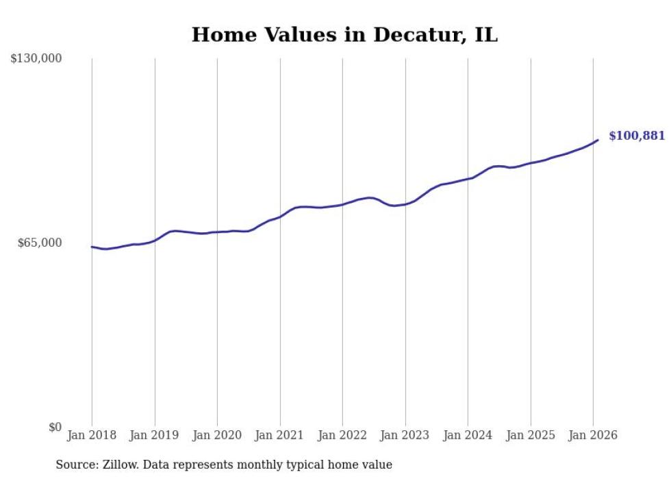 Cities with the fastest-growing home prices in the Decatur, Illinois metro area