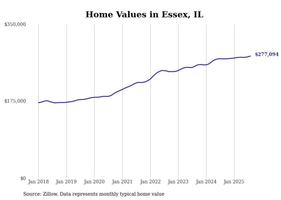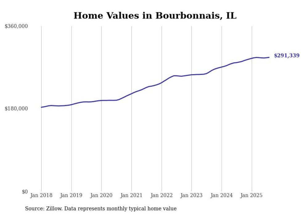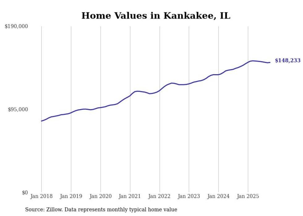 Stacker compiled a list of cities with the most expensive homes in the Kankakee, IL metro area using data from Zillow. Charts show the monthly typical home value since January 2018.