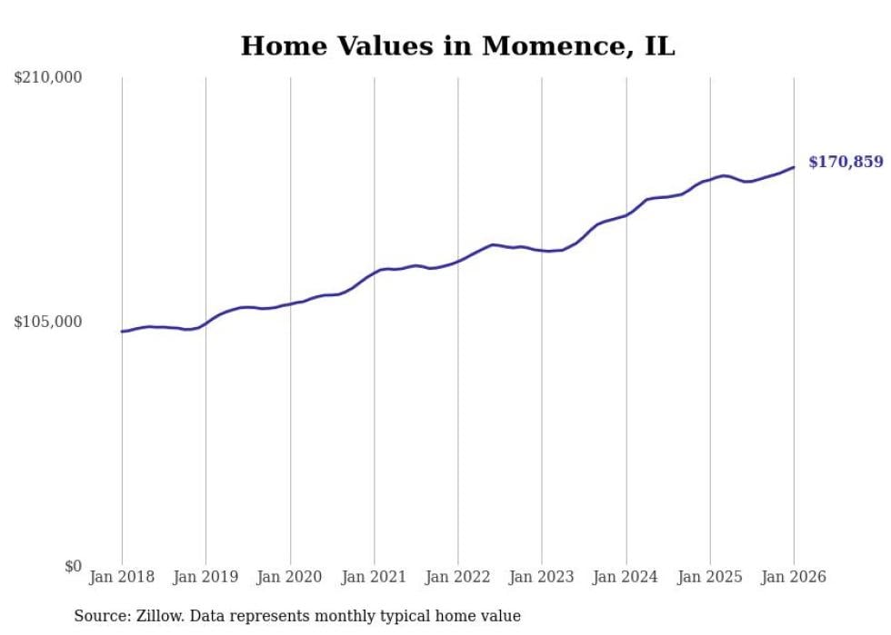 Cities with the fastest-growing home prices in the Kankakee metro area