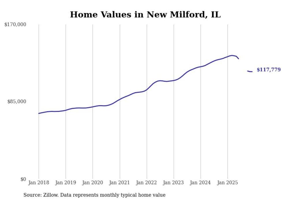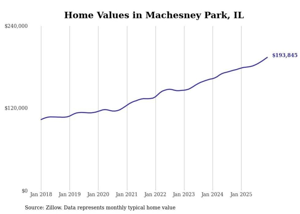 Stacker compiled a list of cities with the most expensive homes in the Rockford, IL metro area using data from Zillow. Charts show the monthly typical home value since January 2018.