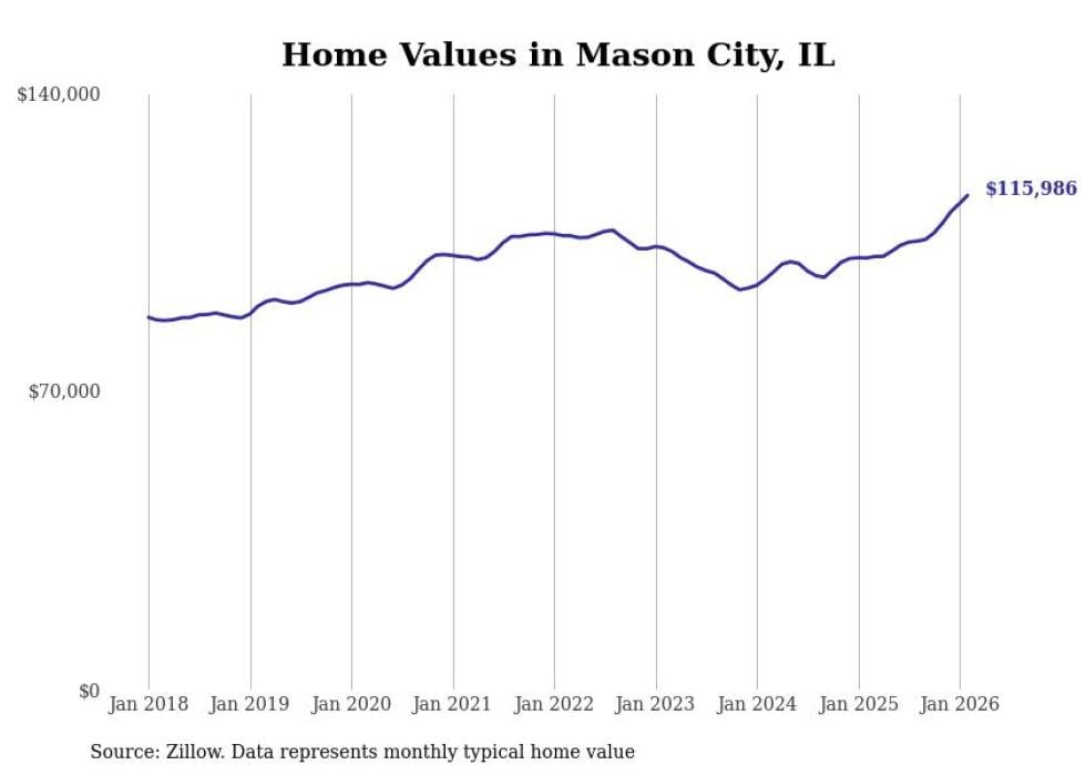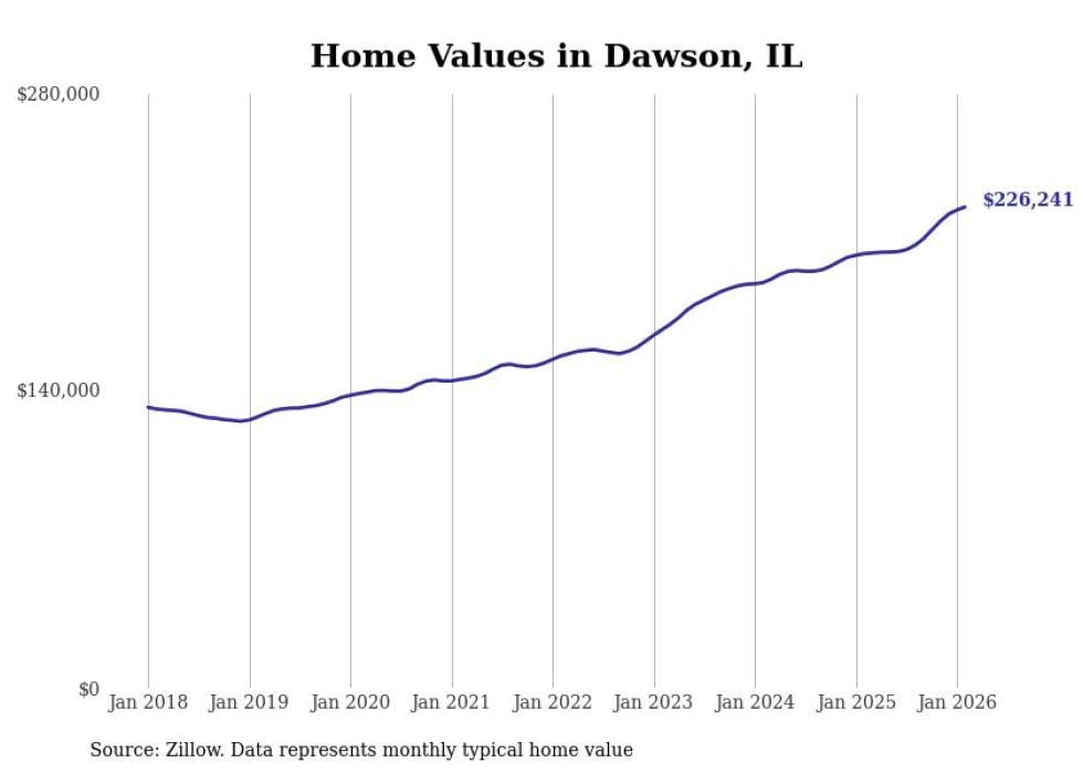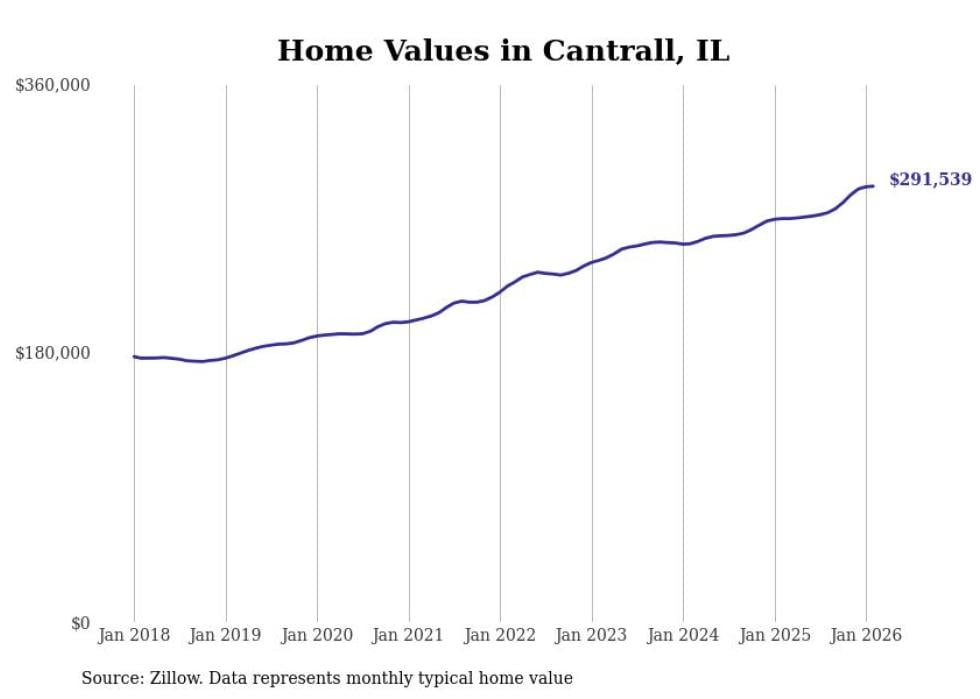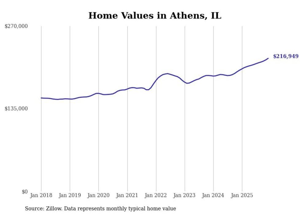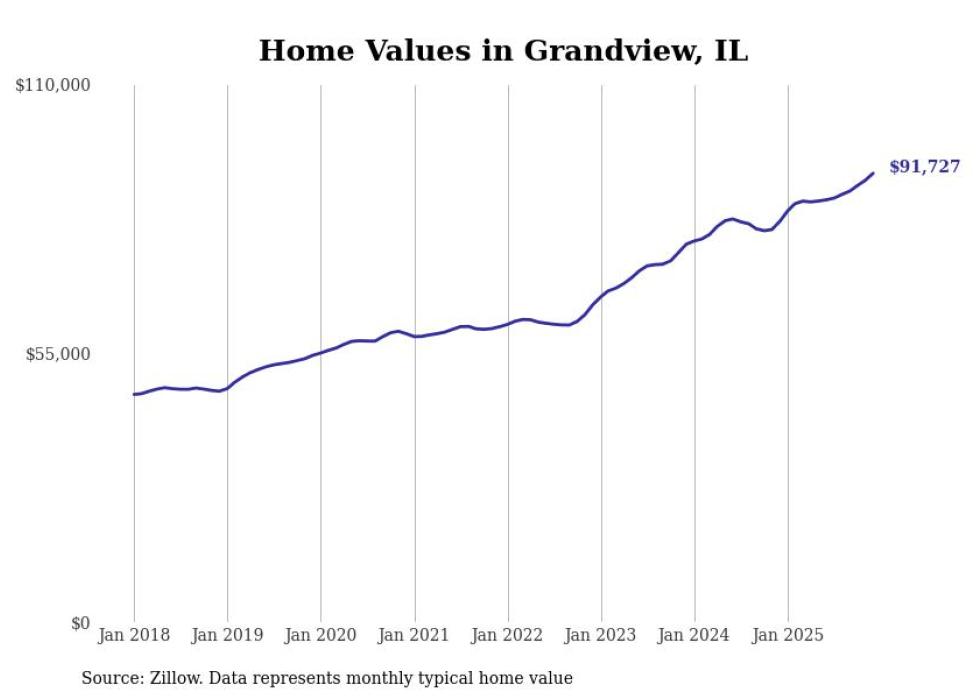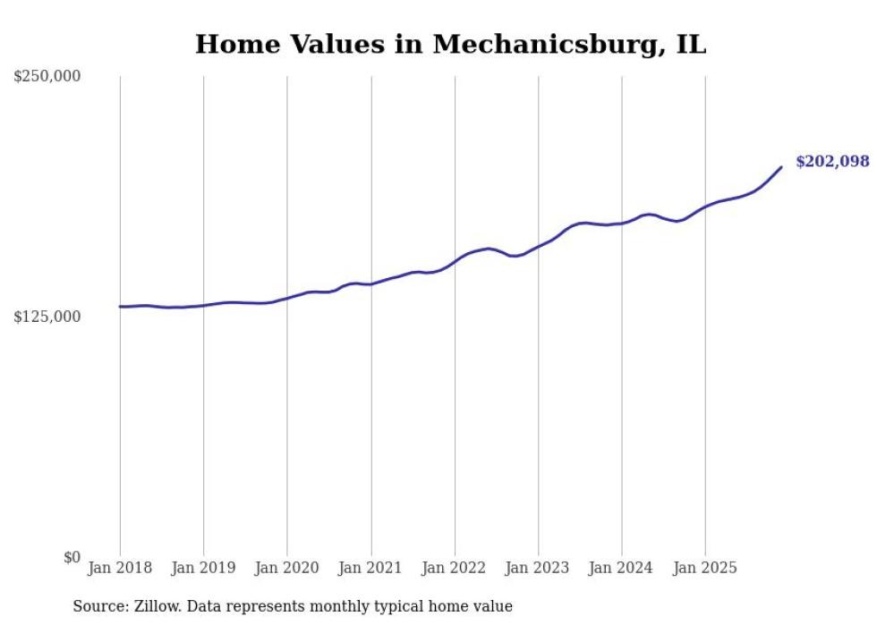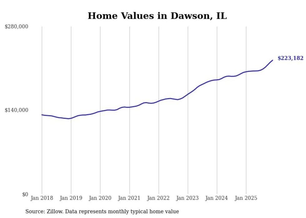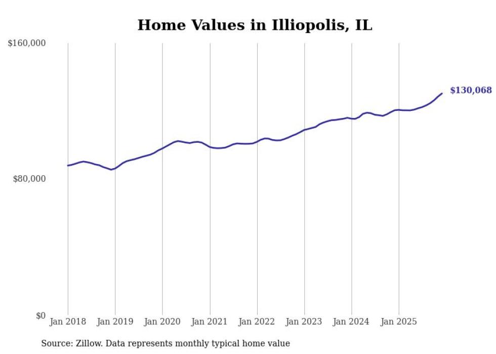 Cities with the fastest-growing home prices in the Springfield, Illinois metro area