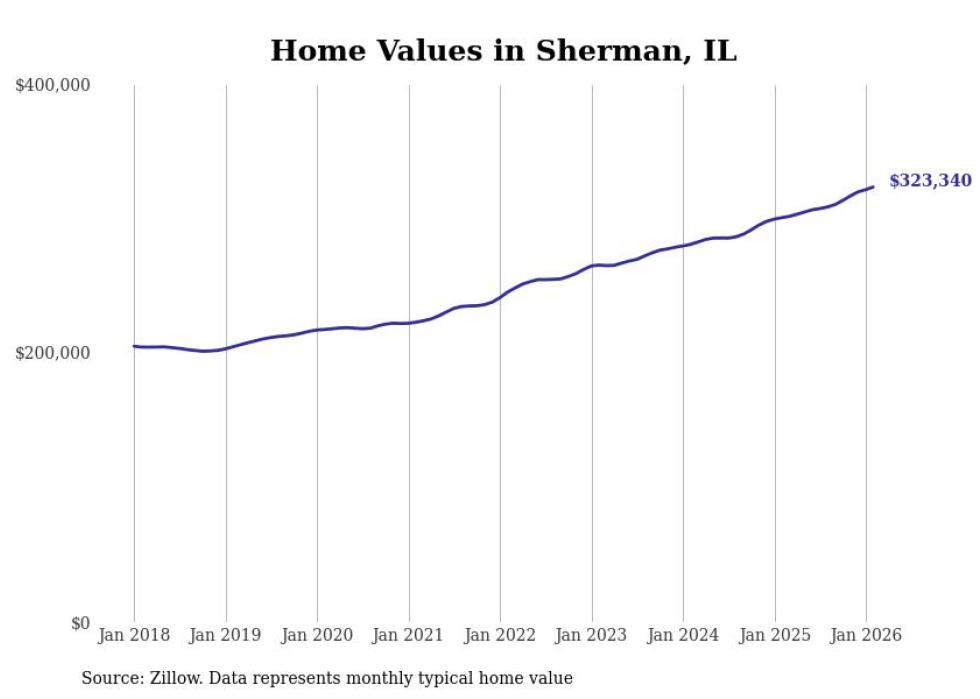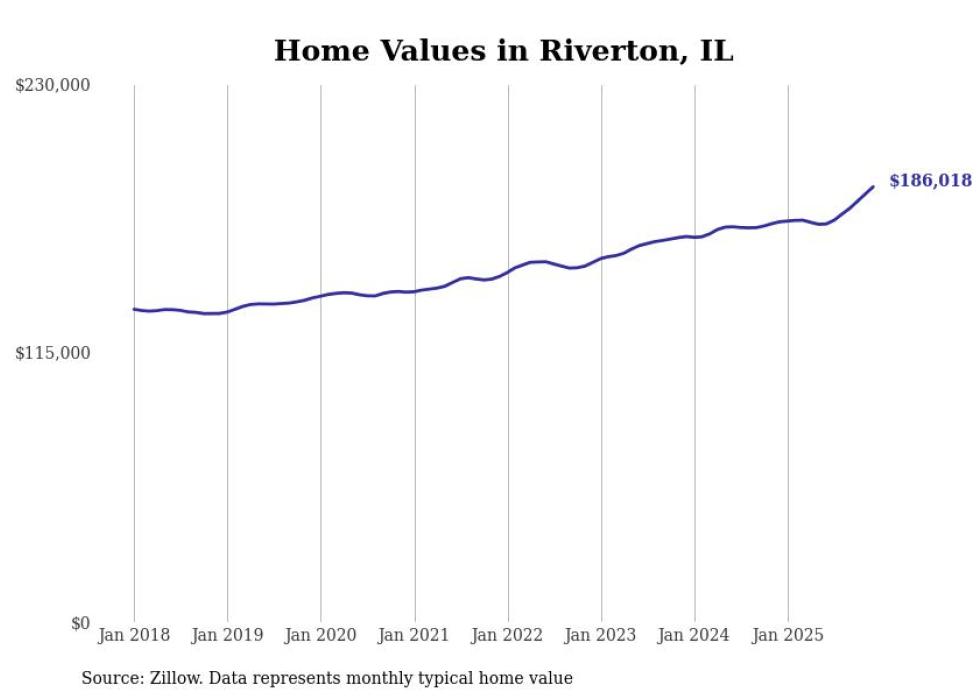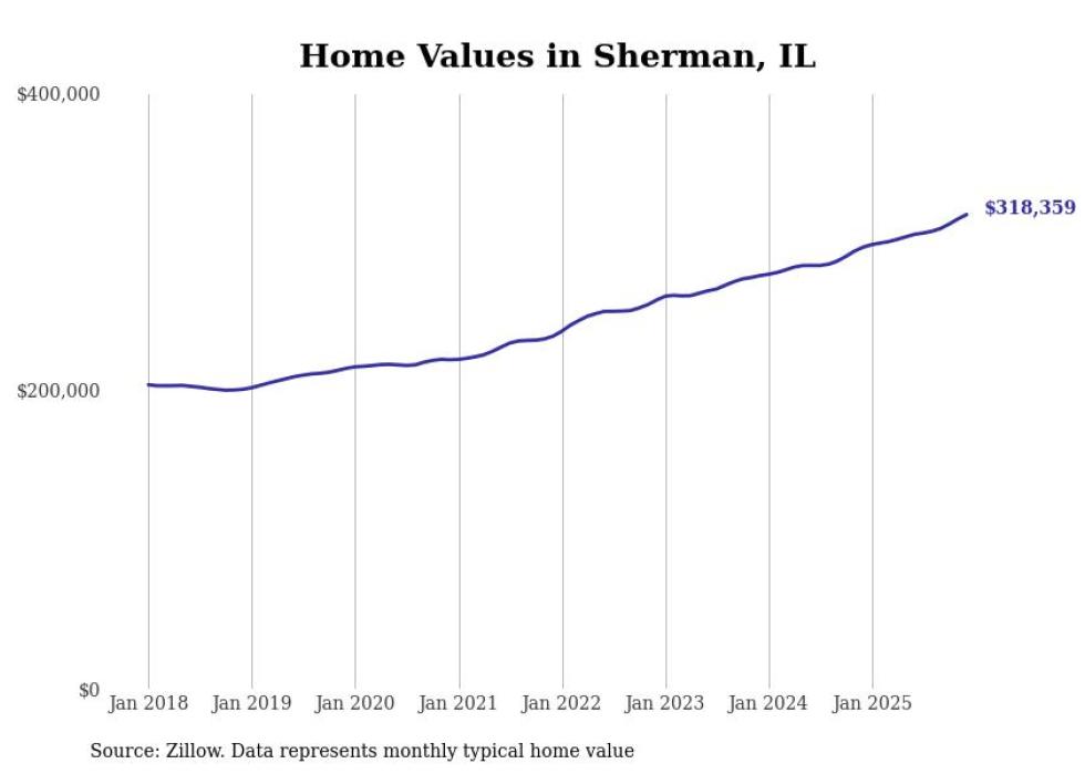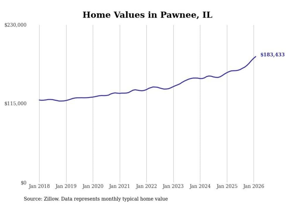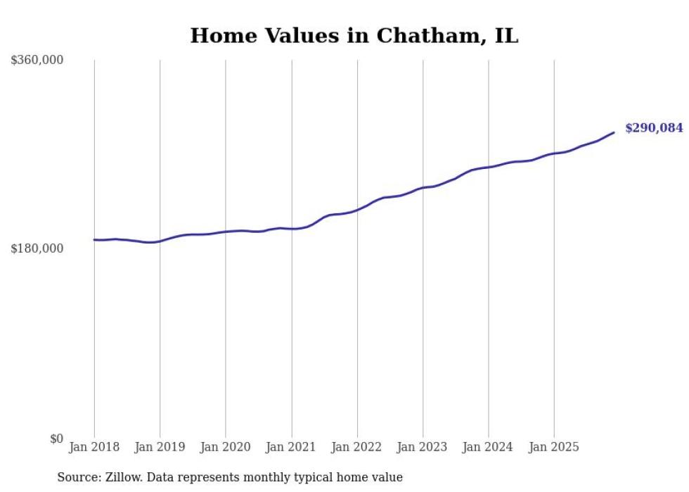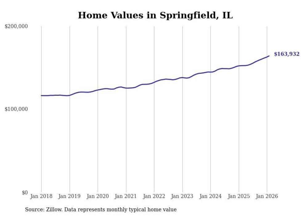 Stacker compiled a list of cities with the most expensive homes in the Springfield, IL metro area using data from Zillow. Charts show the monthly typical home value since January 2018.