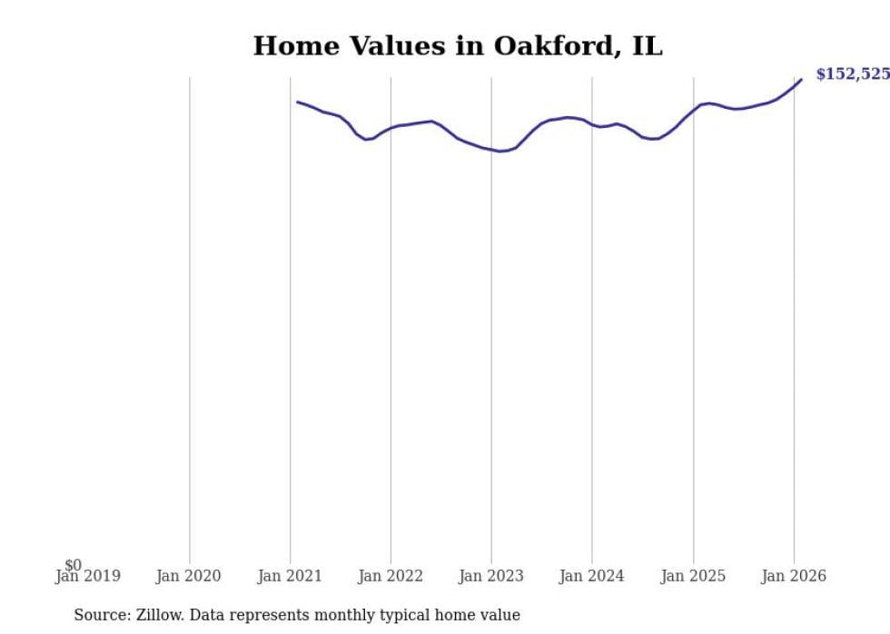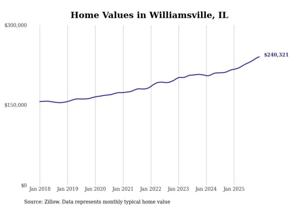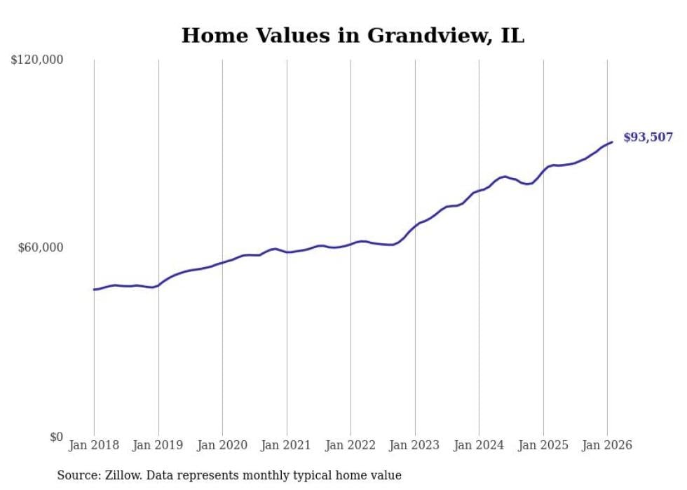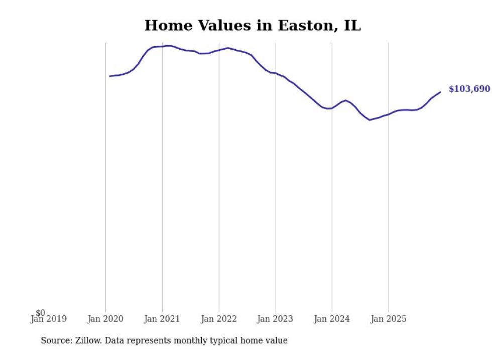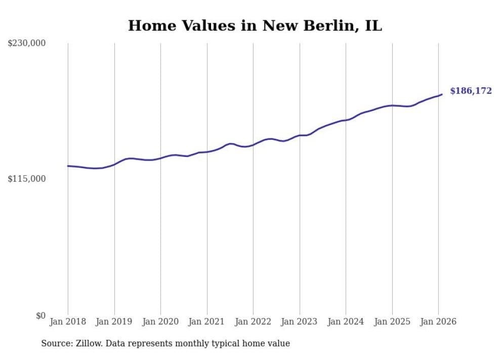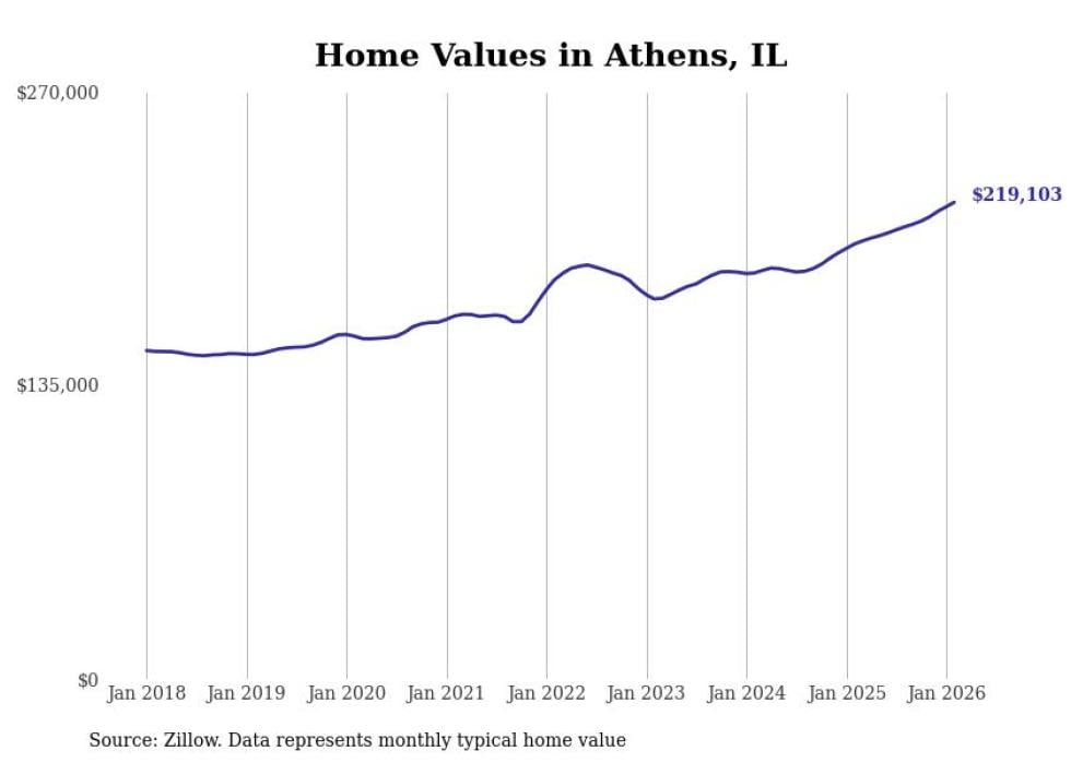 Stacker compiled a list of cities with the most expensive homes in the Springfield, IL metro area using data from Zillow. Charts show the monthly typical home value since January 2018.