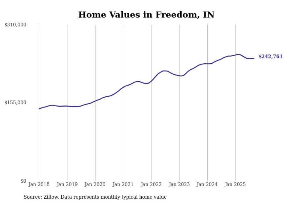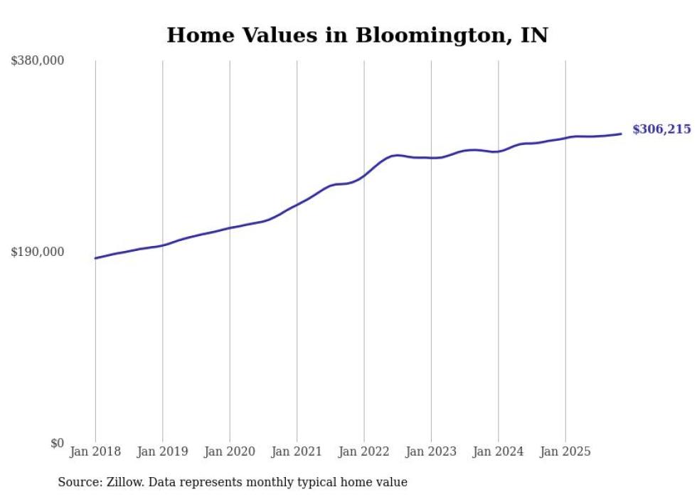 Stacker compiled a list of cities with the most expensive homes in the Bloomington, IN metro area using data from Zillow. Charts show the monthly typical home value since January 2018.