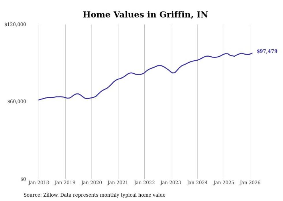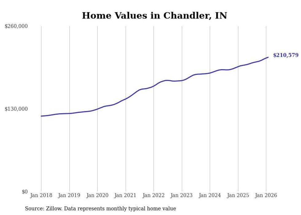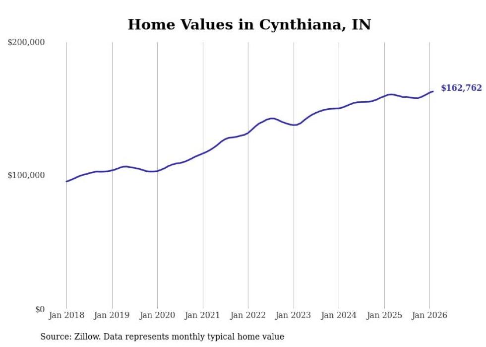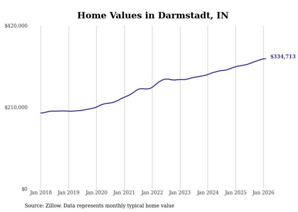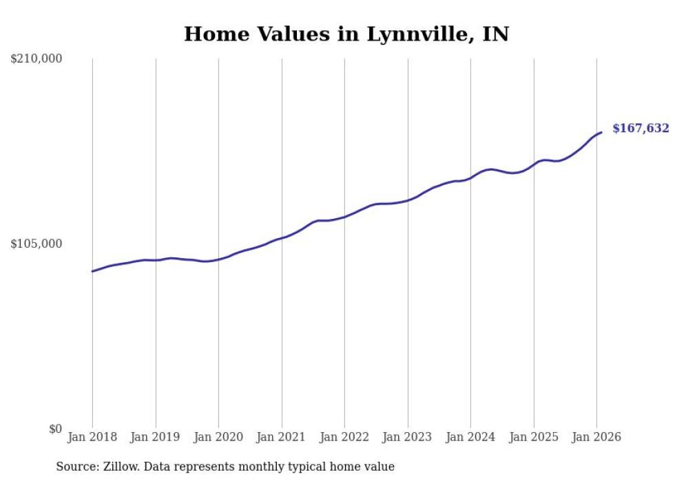 Stacker compiled a list of cities with the most expensive homes in the Evansville, IN-KY metro area using data from Zillow. Charts show the monthly typical home value since January 2018.