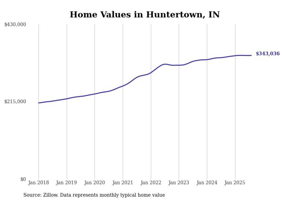 Stacker compiled a list of cities with the most expensive homes in the Fort Wayne, IN metro area using data from Zillow. Charts show the monthly typical home value since January 2018.