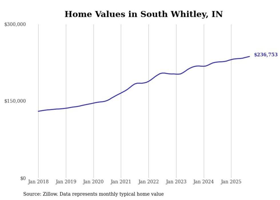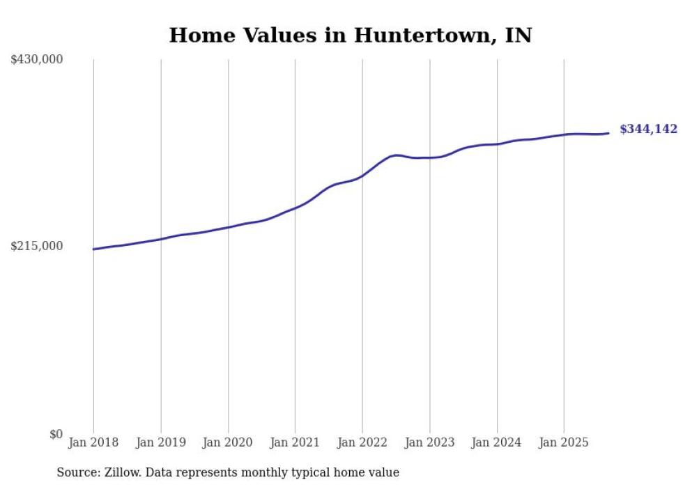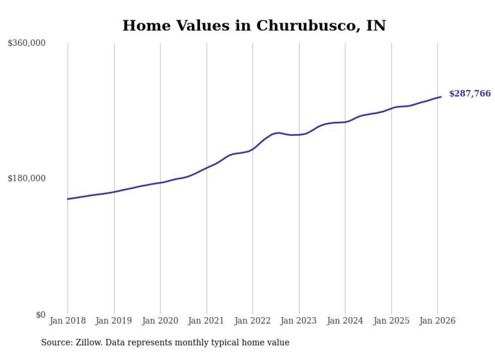 Stacker compiled a list of cities with the most expensive homes in the Fort Wayne metro area using data from Zillow. Charts show the monthly typical home value since January 2018. All 13 cities and towns with data available were included in the list.