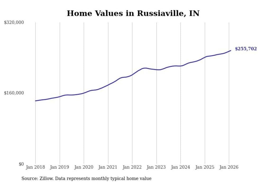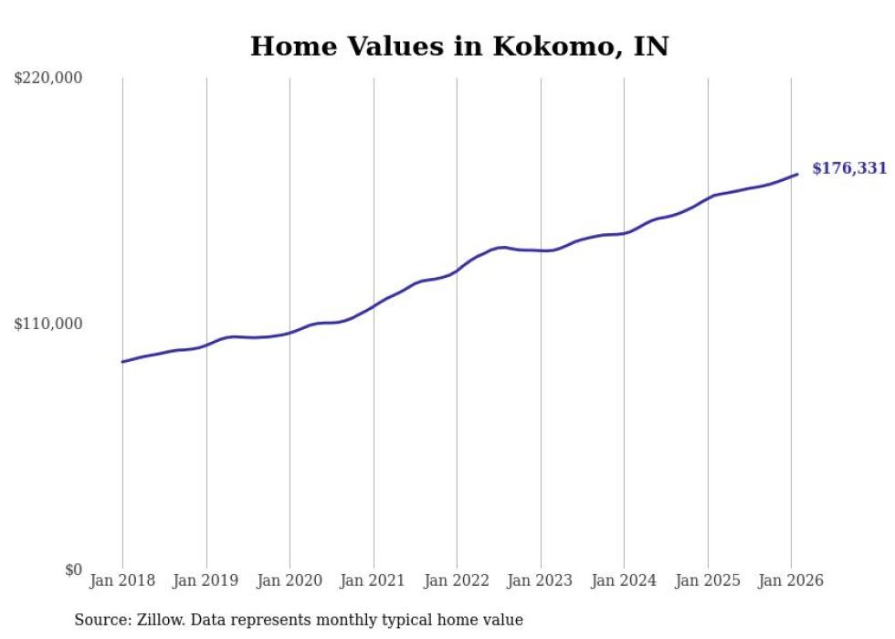 Stacker compiled a list of cities with the most expensive homes in the Kokomo, IN metro area using data from Zillow. Charts show the monthly typical home value since January 2018.