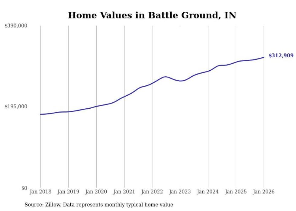 Cities with the fastest-growing home prices in the Lafayette, Indiana metro area