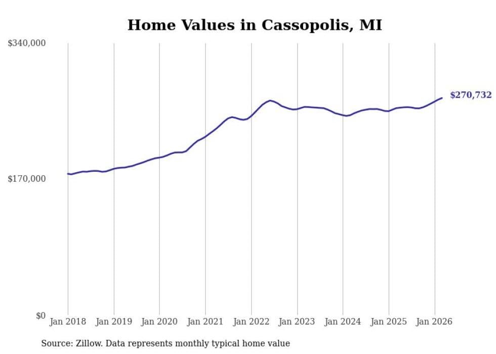 Stacker compiled a list of cities with the most expensive homes in the South Bend-Mishawaka, IN-MI metro area using data from Zillow. Charts show the monthly typical home value since January 2018.