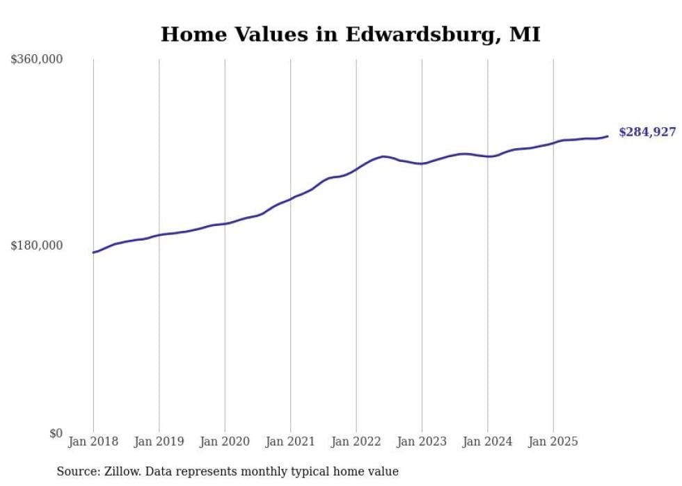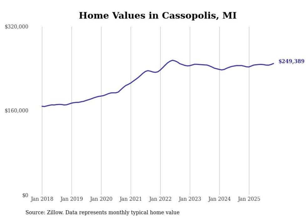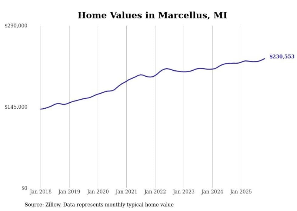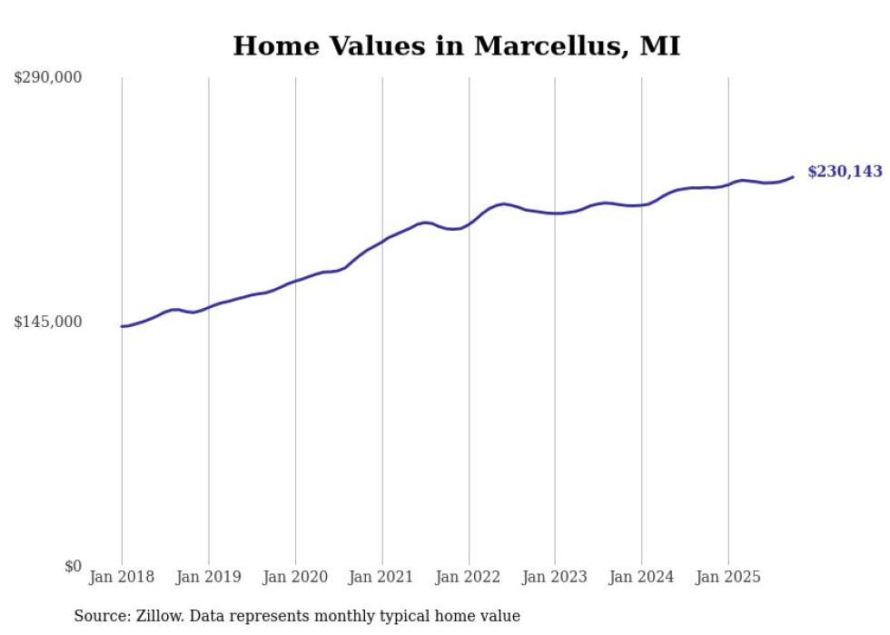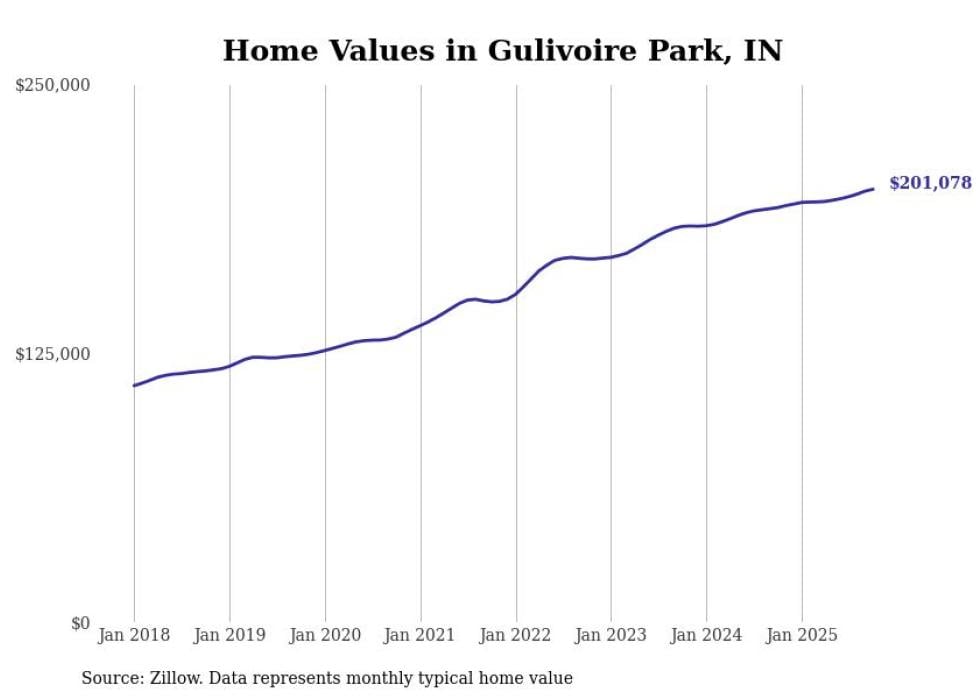 Stacker compiled a list of cities with the most expensive homes in the South Bend metro area using data from Zillow. Charts show the monthly typical home value since January 2018. All 17 cities and towns with data available were included in the list.