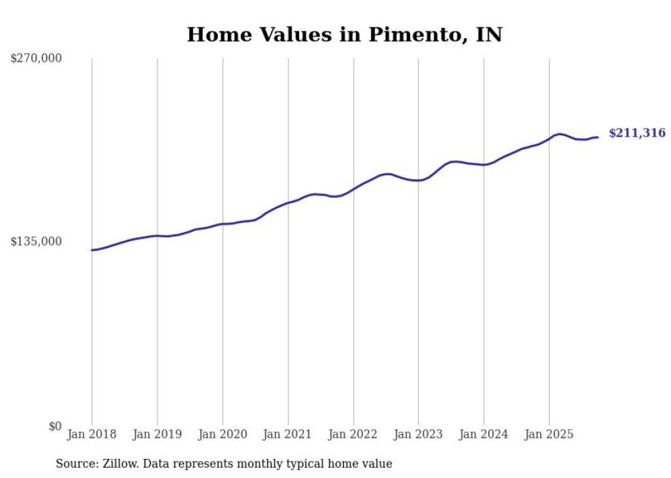 Stacker compiled a list of cities with the most expensive homes in the Terre Haute, IN metro area using data from Zillow. Charts show the monthly typical home value since January 2018.