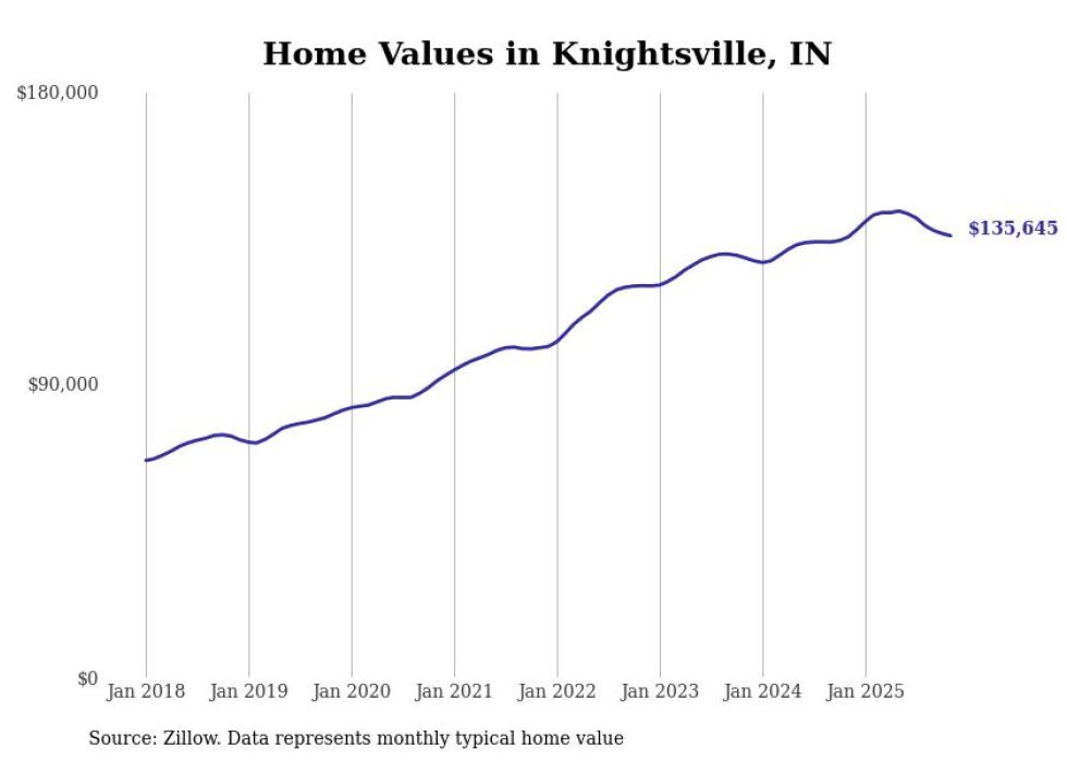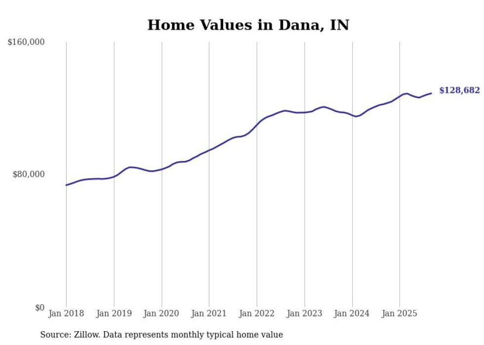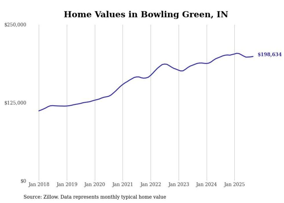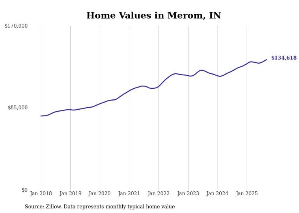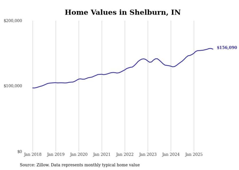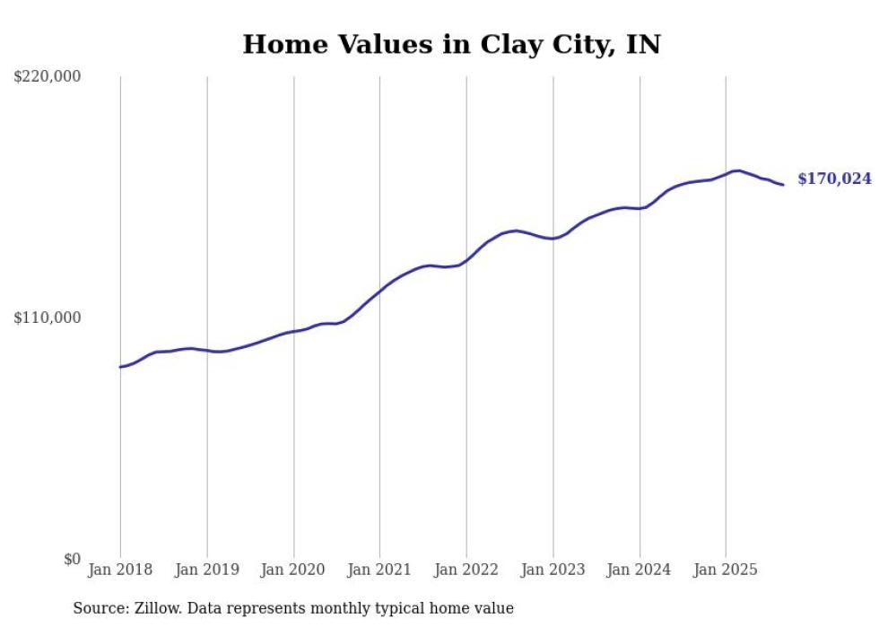 Stacker compiled a list of cities with the most expensive homes in the Terre Haute metro area using data from Zillow. Charts show the monthly typical home value since January 2018. Data was available for 34 cities and towns.