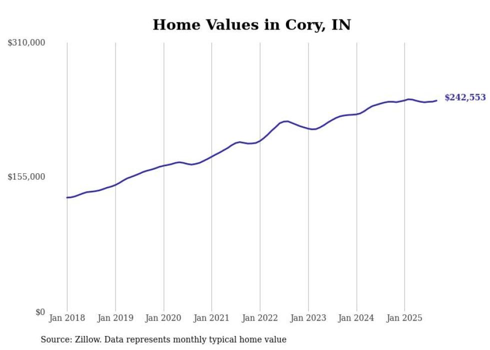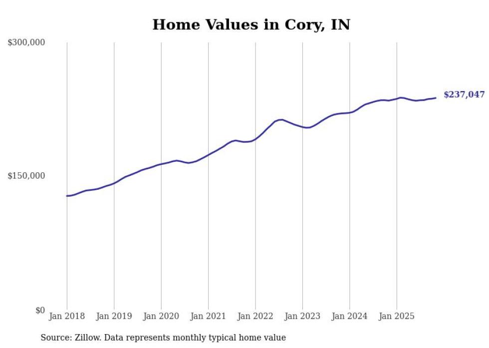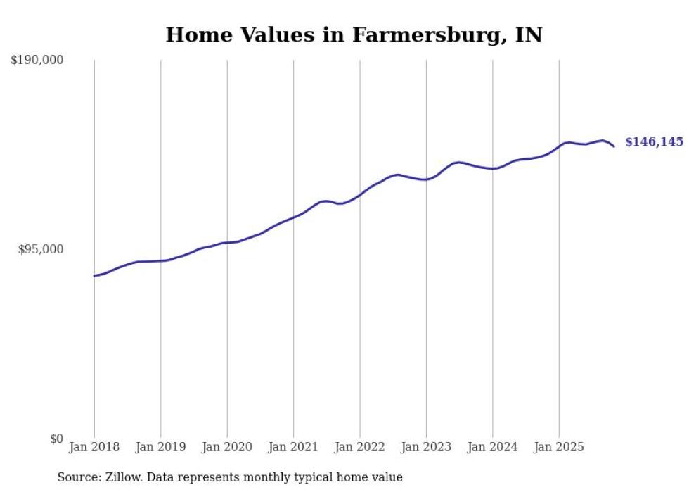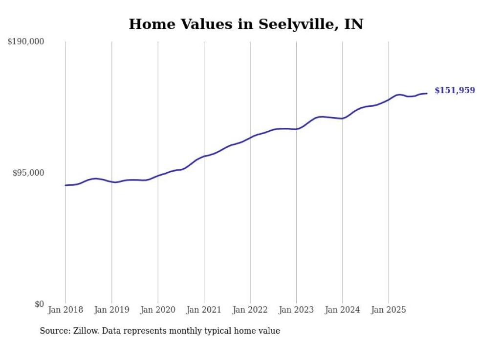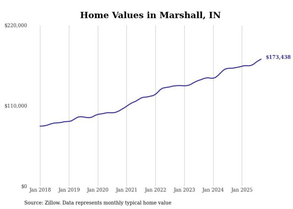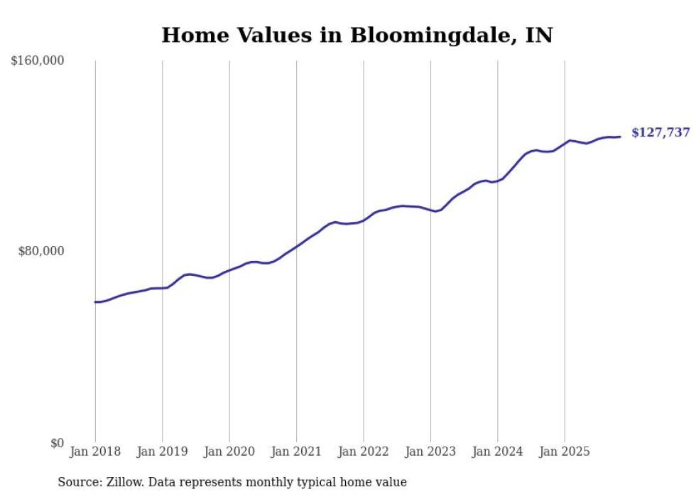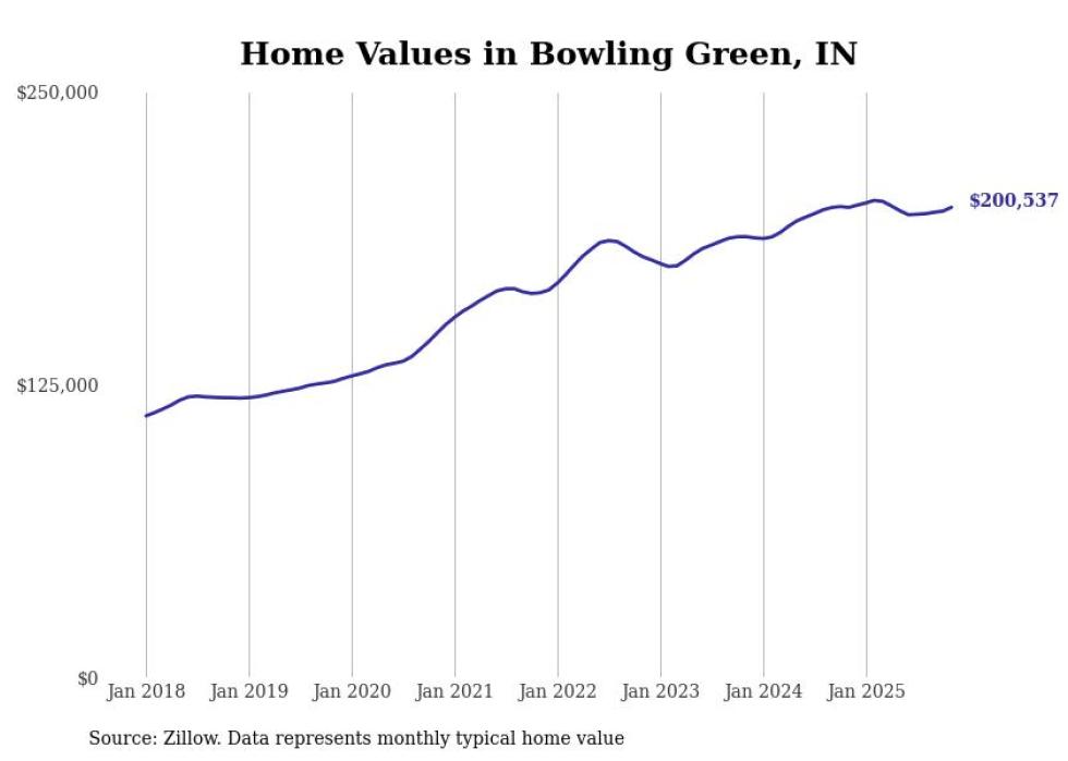 Stacker compiled a list of cities with the most expensive homes in the Terre Haute metro area using data from Zillow. Charts show the monthly typical home value since January 2018. Data was available for 34 cities and towns.