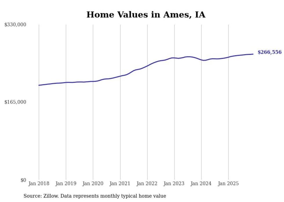 Stacker compiled a list of cities with the most expensive homes in the Ames metro area using data from Zillow. Charts show the monthly typical home value since January 2018. All 17 cities and towns with data available were included in the list.