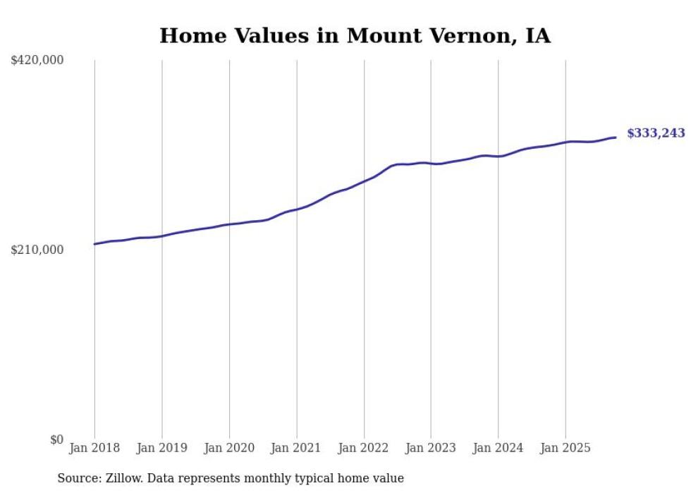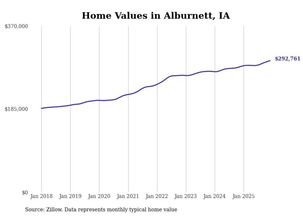 Stacker compiled a list of cities with the most expensive homes in the Cedar Rapids, IA metro area using data from Zillow. Charts show the monthly typical home value since January 2018.