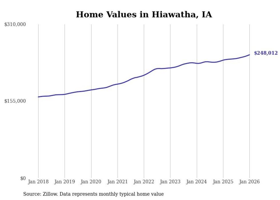 Cities with the fastest-growing home prices in the Cedar Rapids metro area