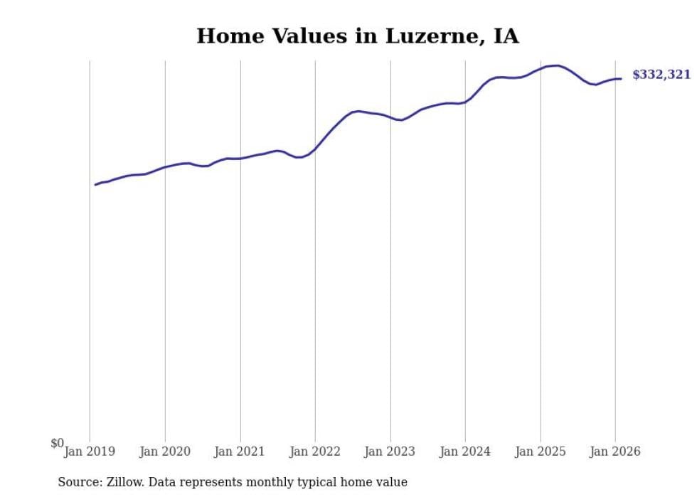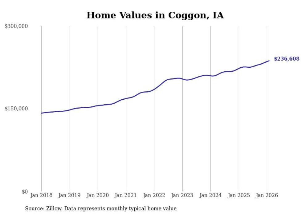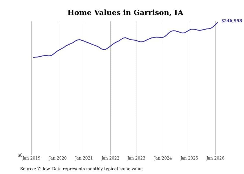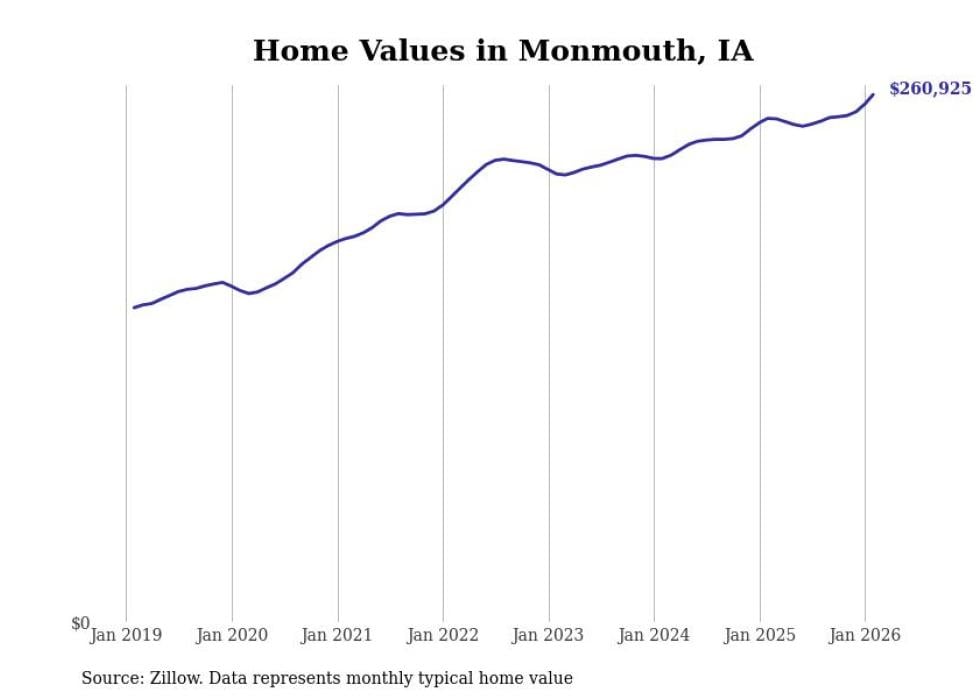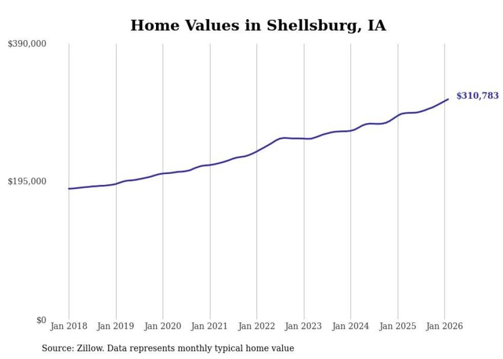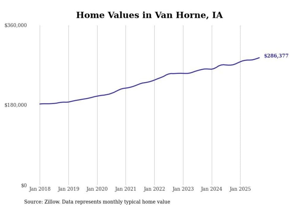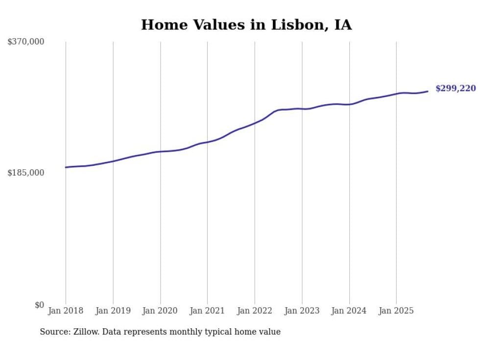 Stacker compiled a list of cities with the most expensive homes in the Cedar Rapids metro area using data from Zillow. Charts show the monthly typical home value since January 2018. Data was available for 46 cities and towns.