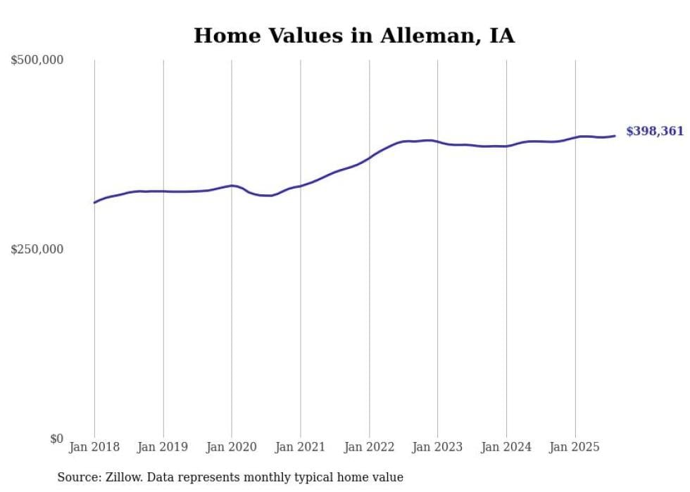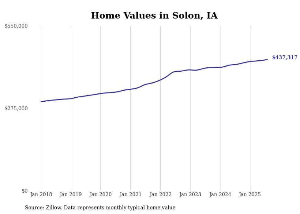 Stacker compiled a list of cities with the most expensive homes in Iowa using data from Zillow. Cities are ranked by the Zillow Home Values Index for all homes as of August 2025. The charts in this story were created automatically using Matplotlib.