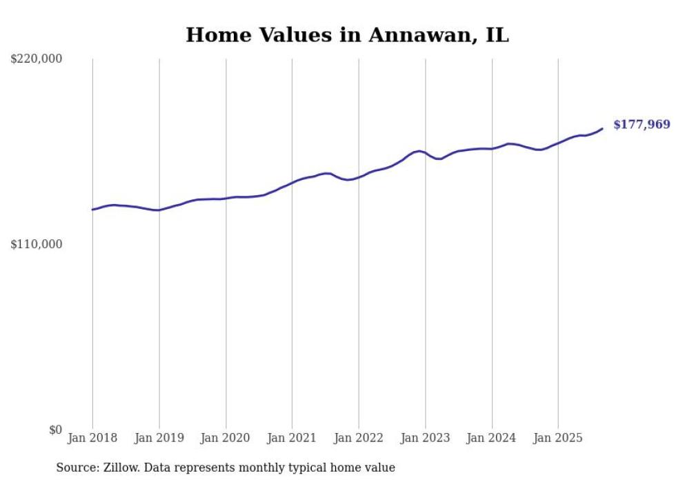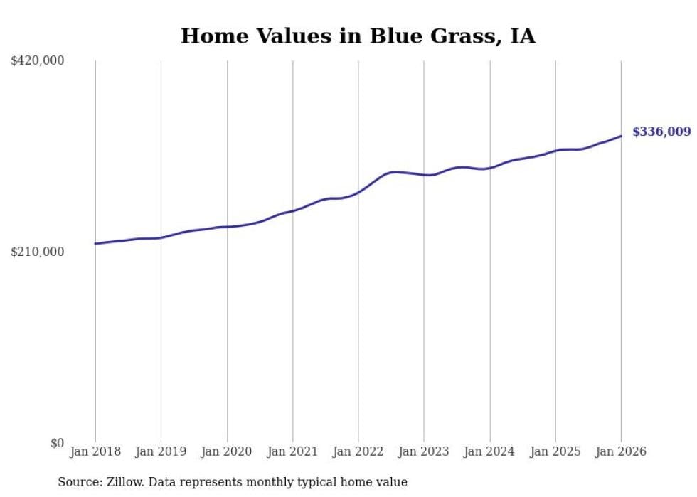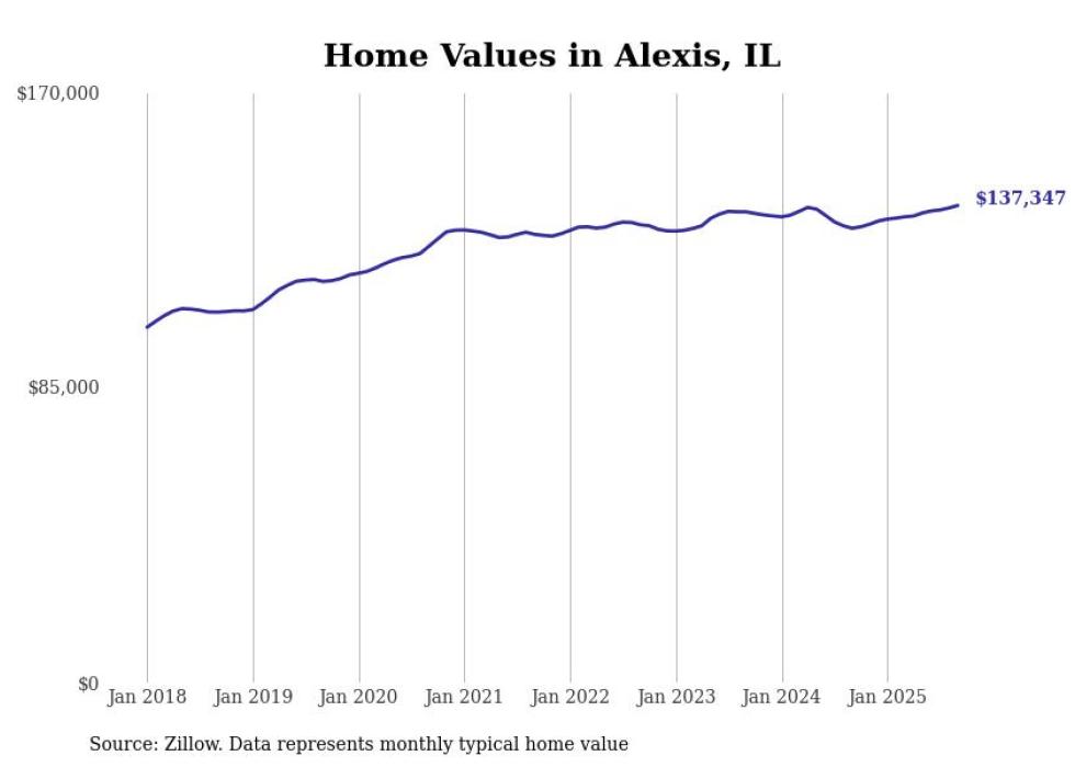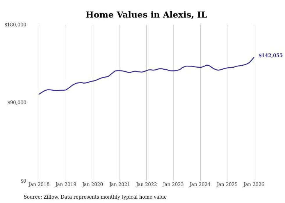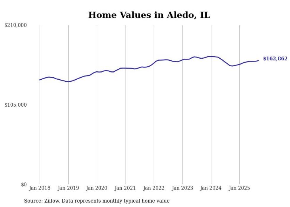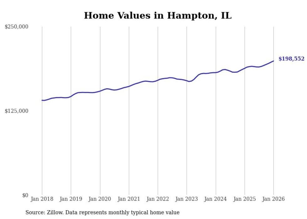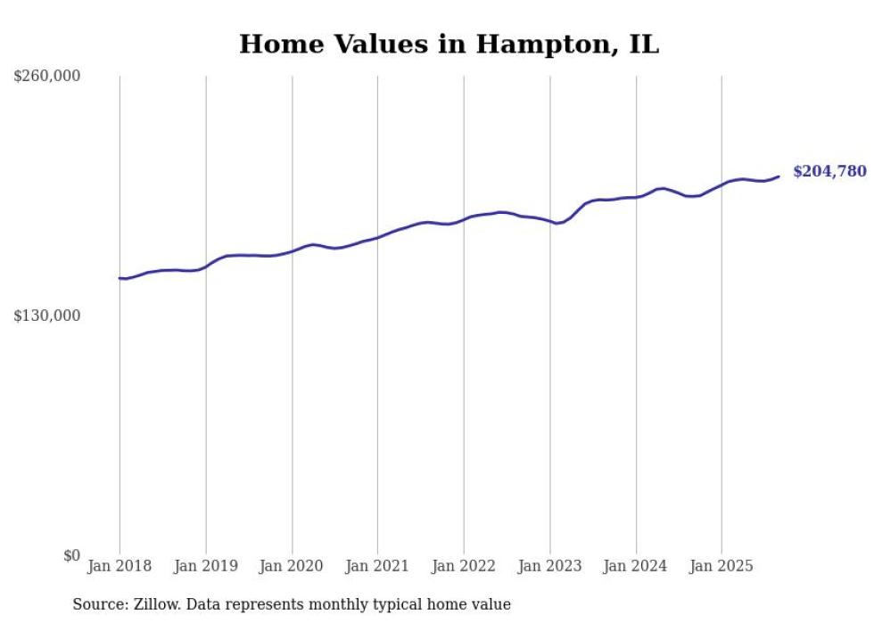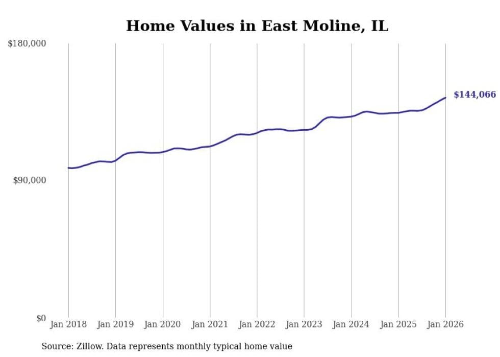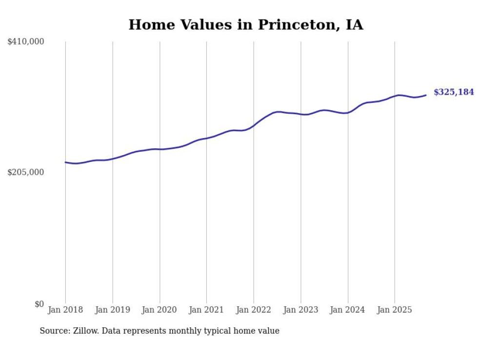 Stacker compiled a list of cities with the most expensive homes in the Davenport-Moline-Rock Island, IA-IL metro area using data from Zillow. Charts show the monthly typical home value since January 2018.