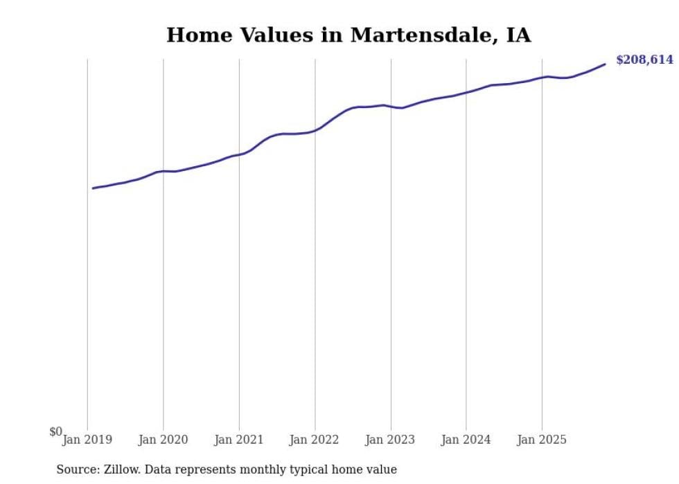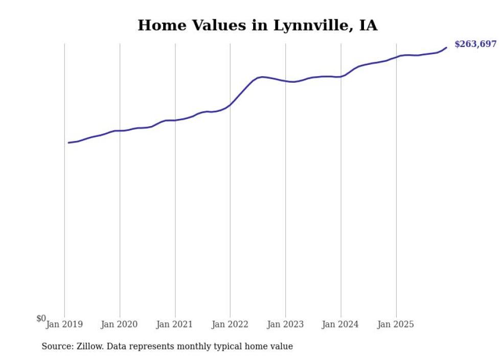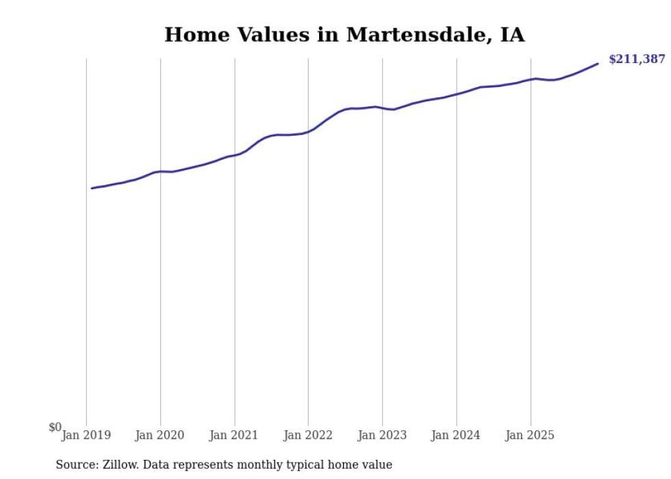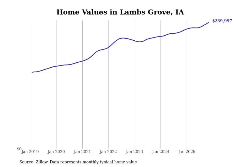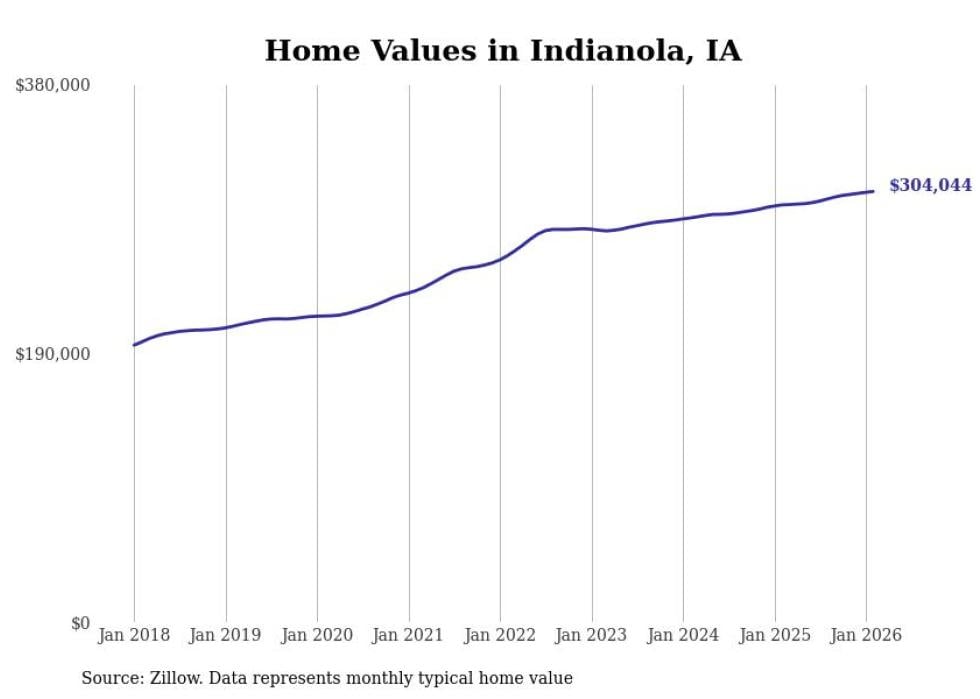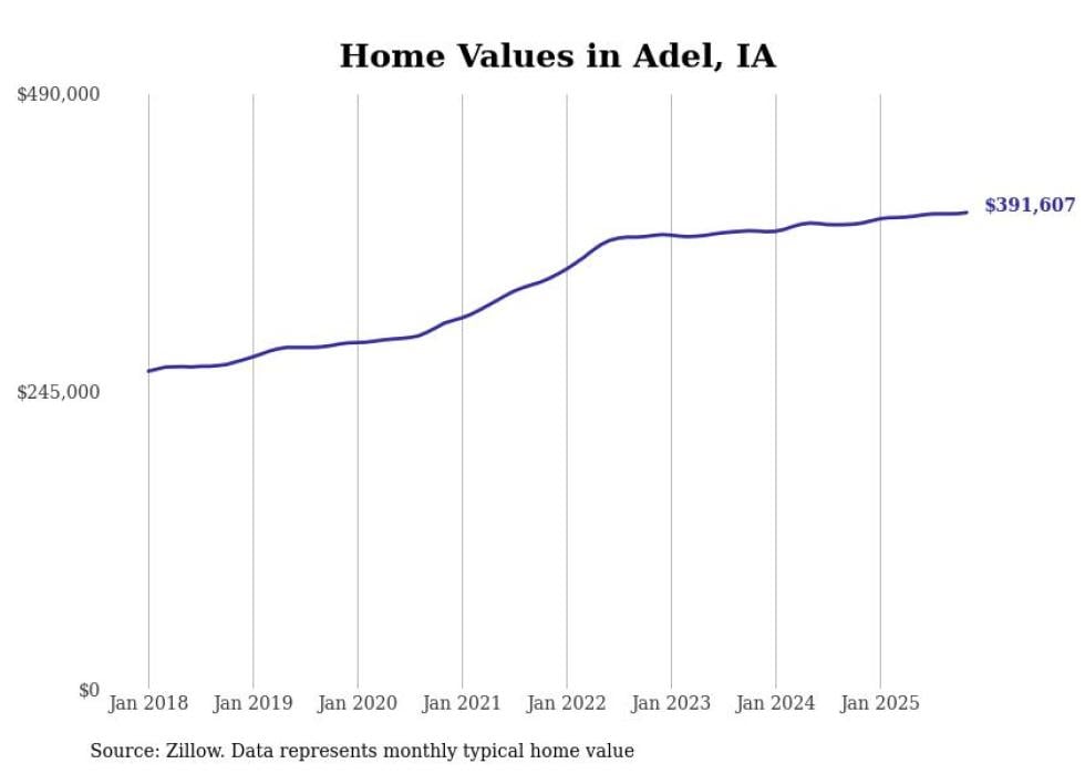 Stacker compiled a list of cities with the most expensive homes in the Des Moines-West Des Moines, IA metro area using data from Zillow. Charts show the monthly typical home value since January 2018.