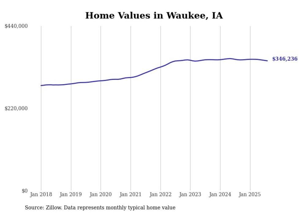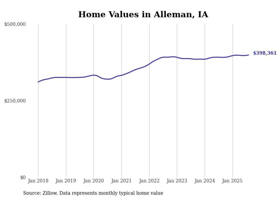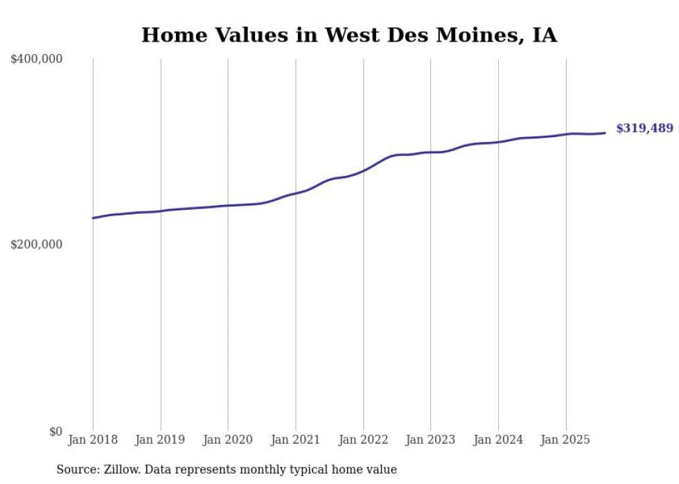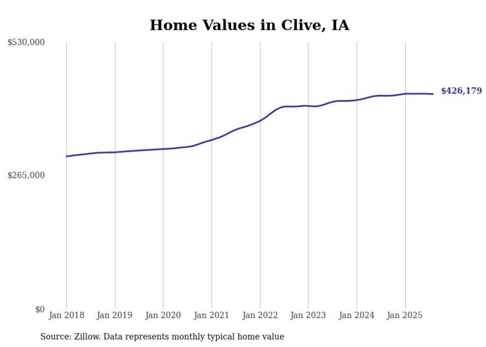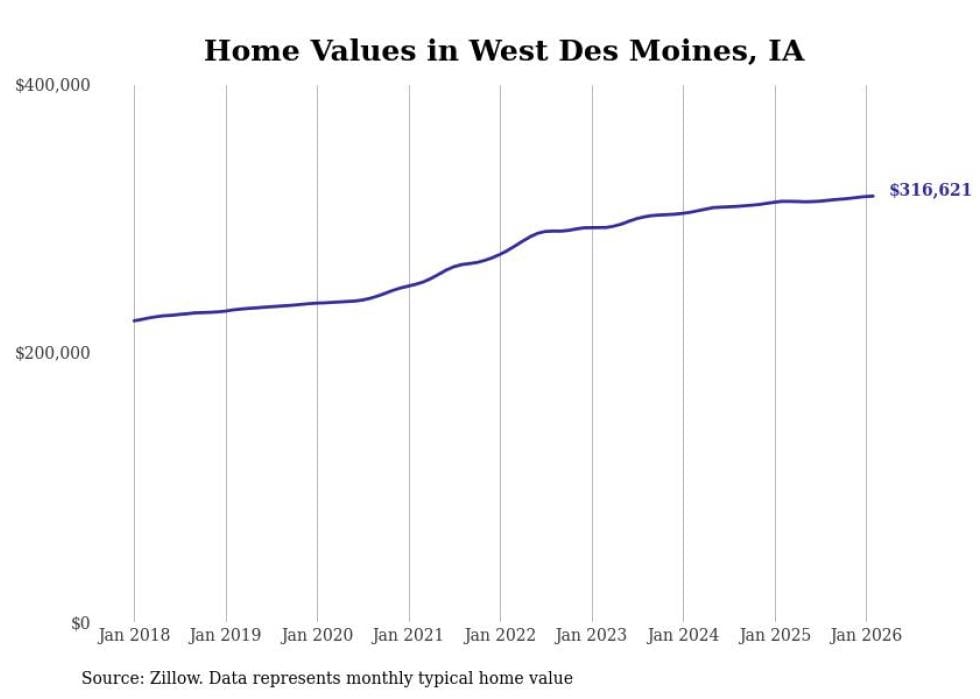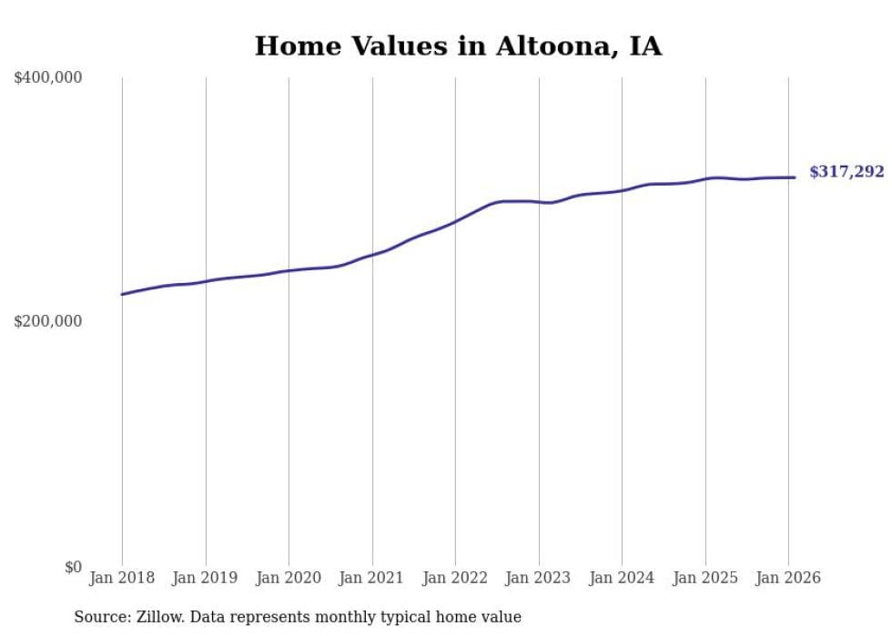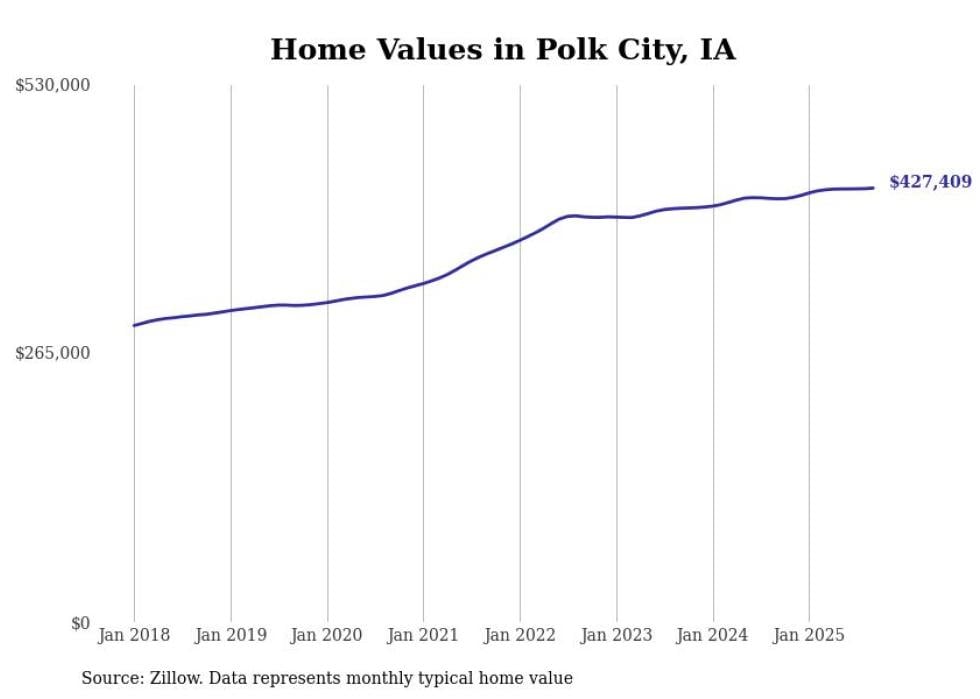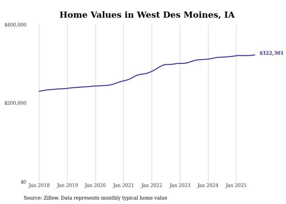 Stacker compiled a list of cities with the most expensive homes in the Des Moines metro area using data from Zillow. Charts show the monthly typical home value since January 2018. Data was available for 69 cities and towns.