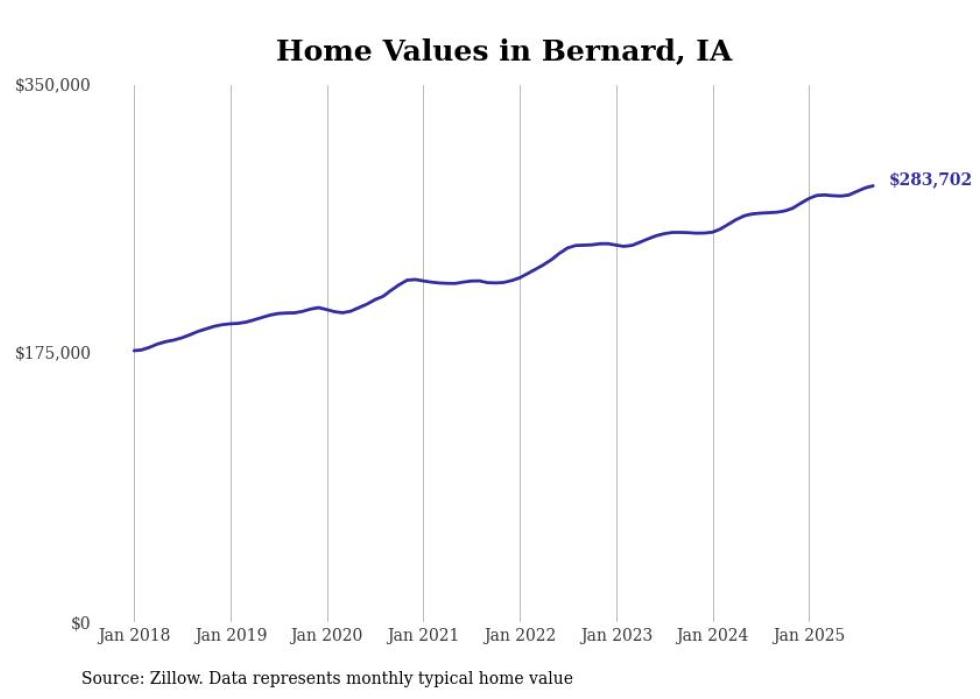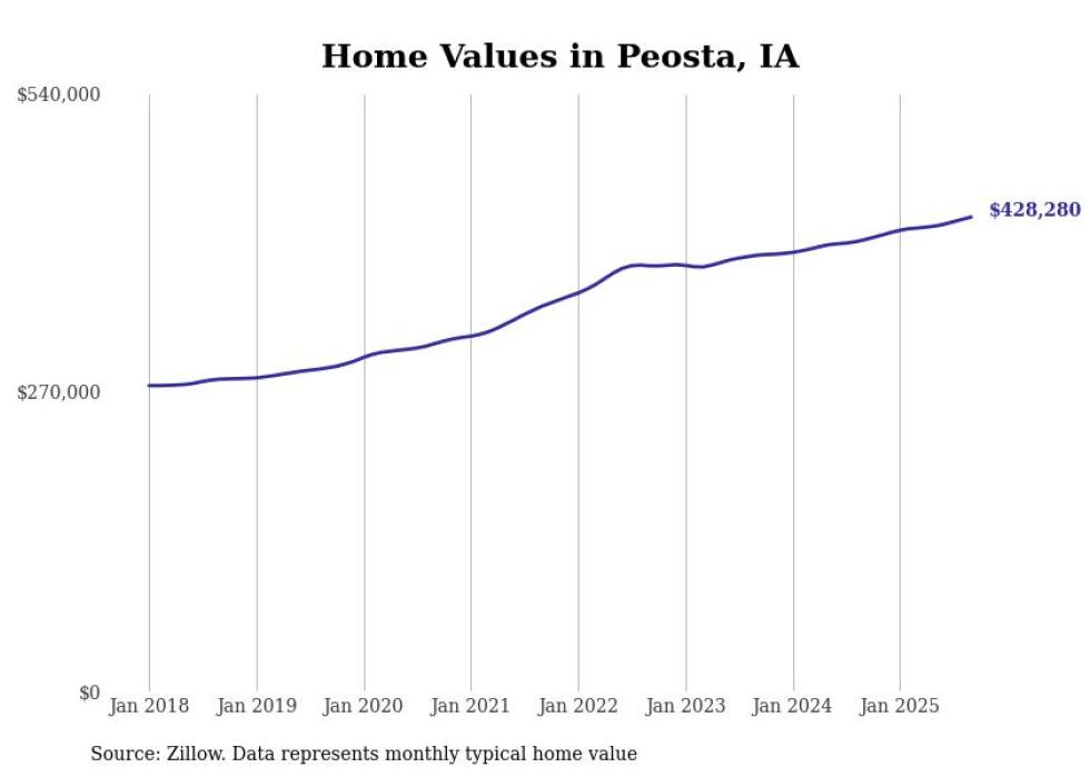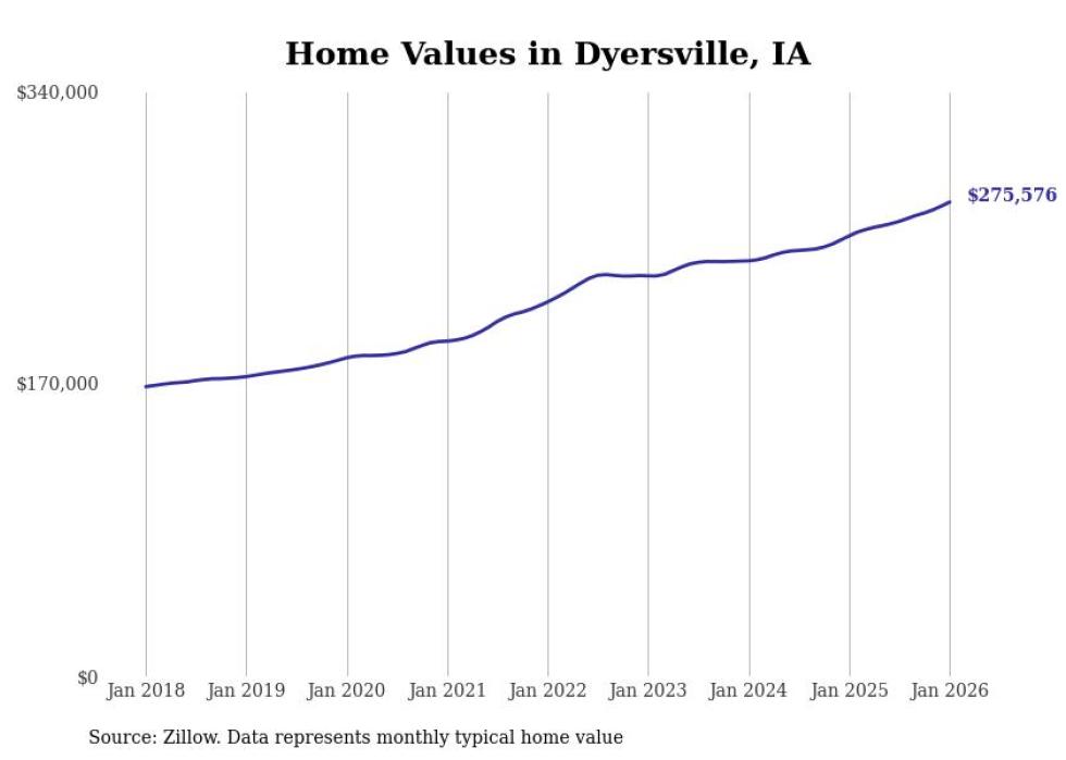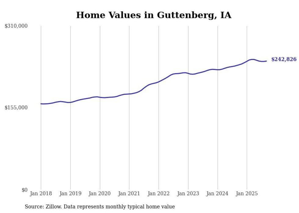 Stacker compiled a list of cities with the most expensive homes in the Dubuque, IA metro area using data from Zillow. Charts show the monthly typical home value since January 2018.