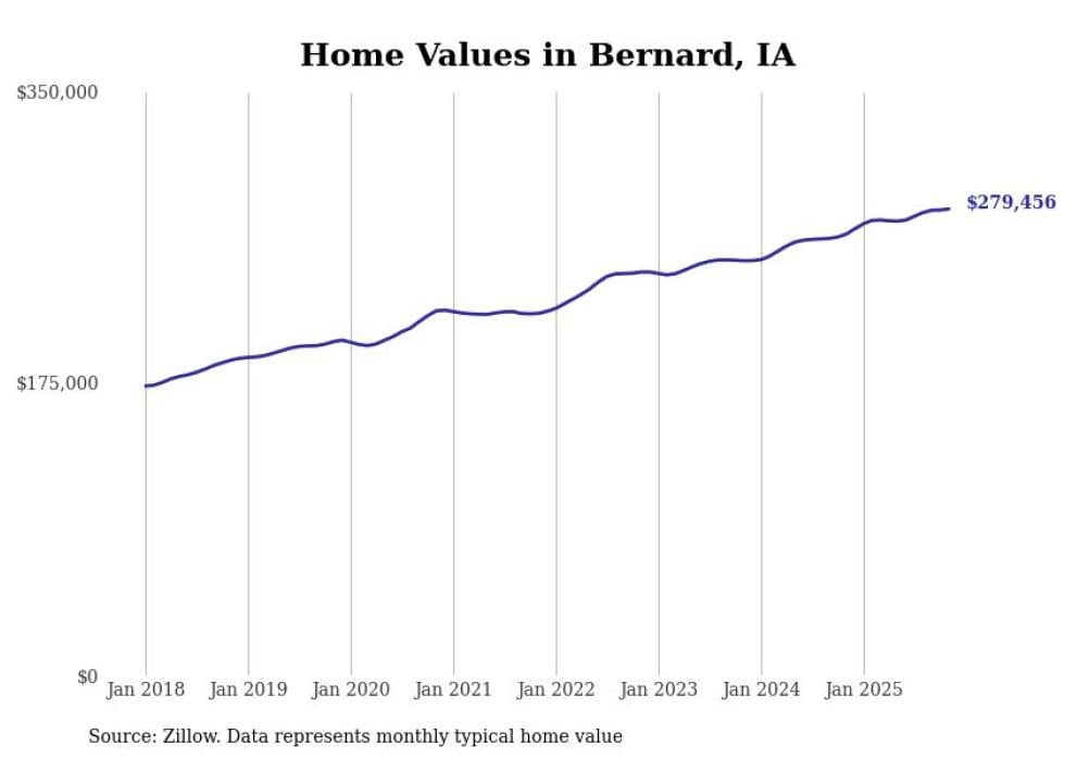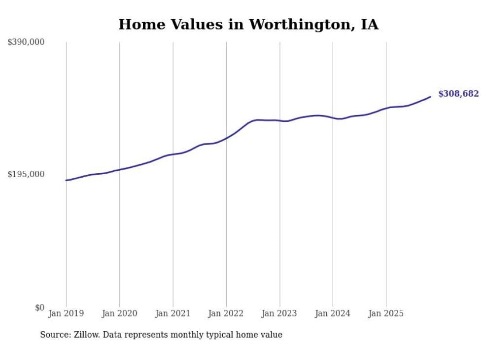 Cities with the fastest-growing home prices in the Dubuque metro area