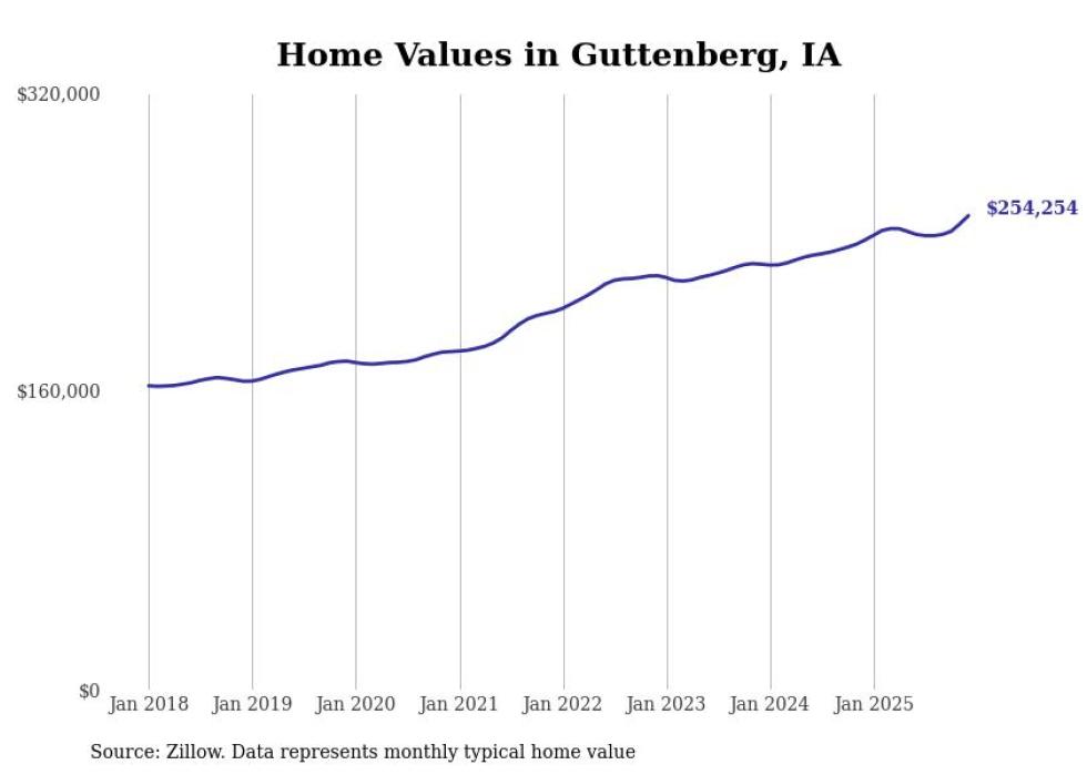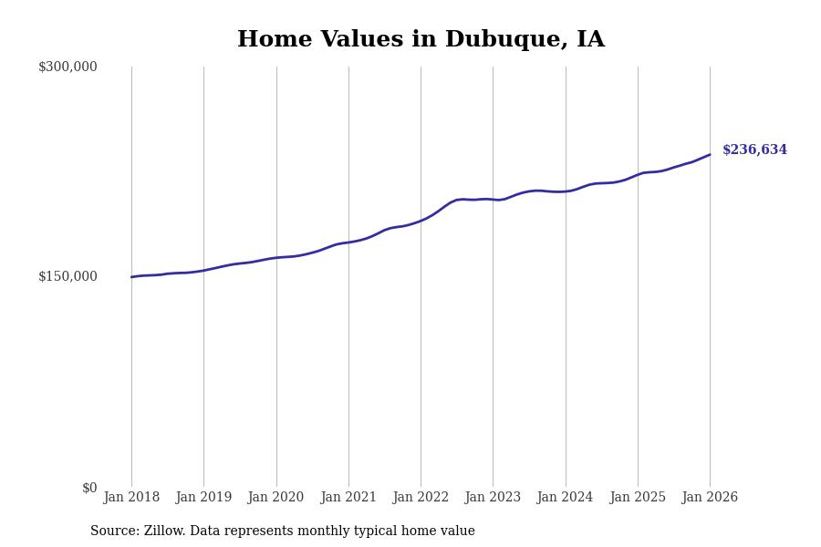 Stacker compiled a list of cities with the most expensive homes in the Dubuque metro area using data from Zillow. Charts show the monthly typical home value since January 2018. All 13 cities and towns with data available were included in the list.