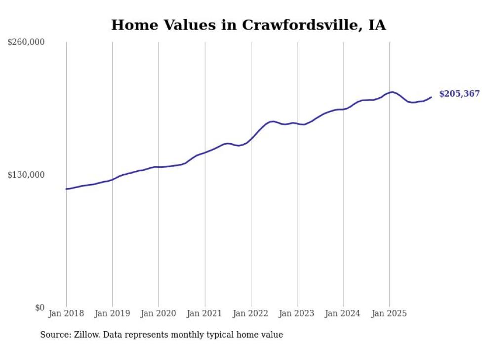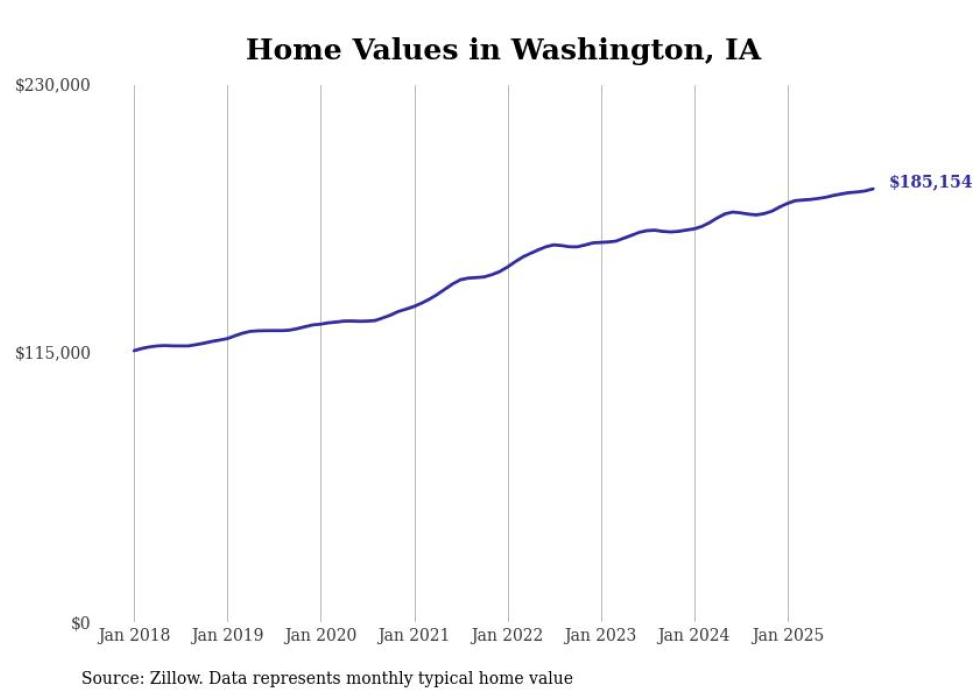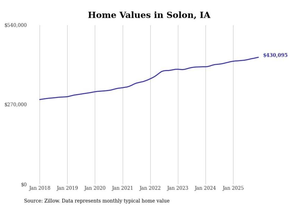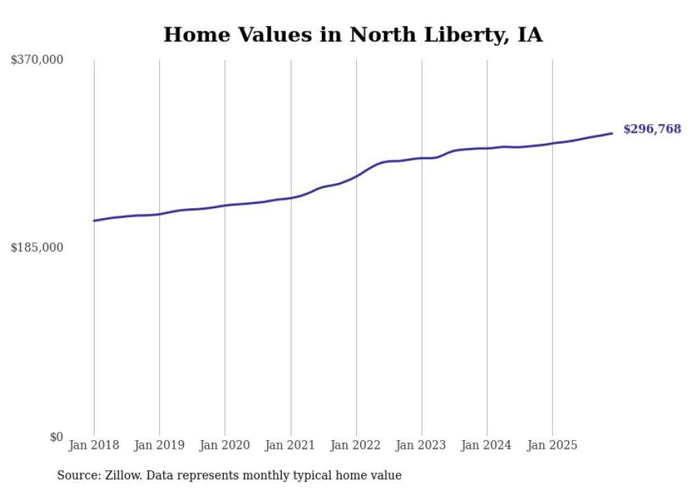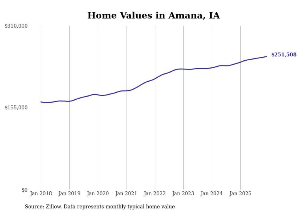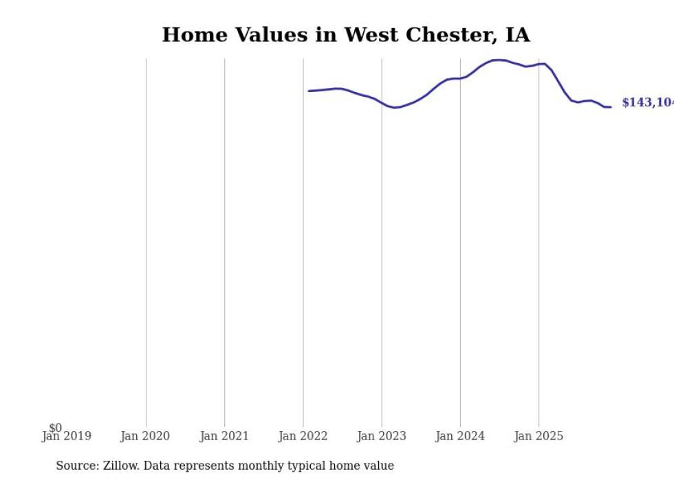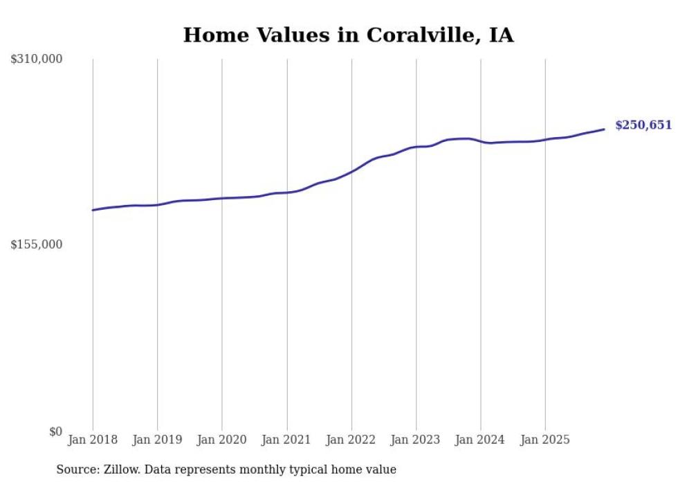 Stacker compiled a list of cities with the most expensive homes in the Iowa City metro area using data from Zillow. Charts show the monthly typical home value since January 2018. All 21 cities and towns with data available were included in the list.