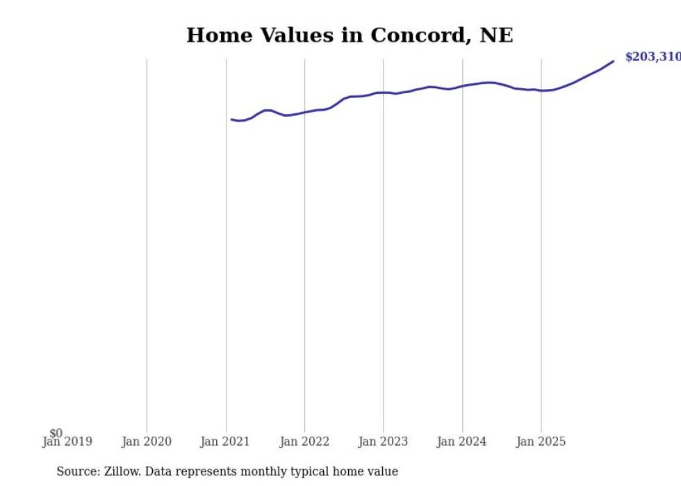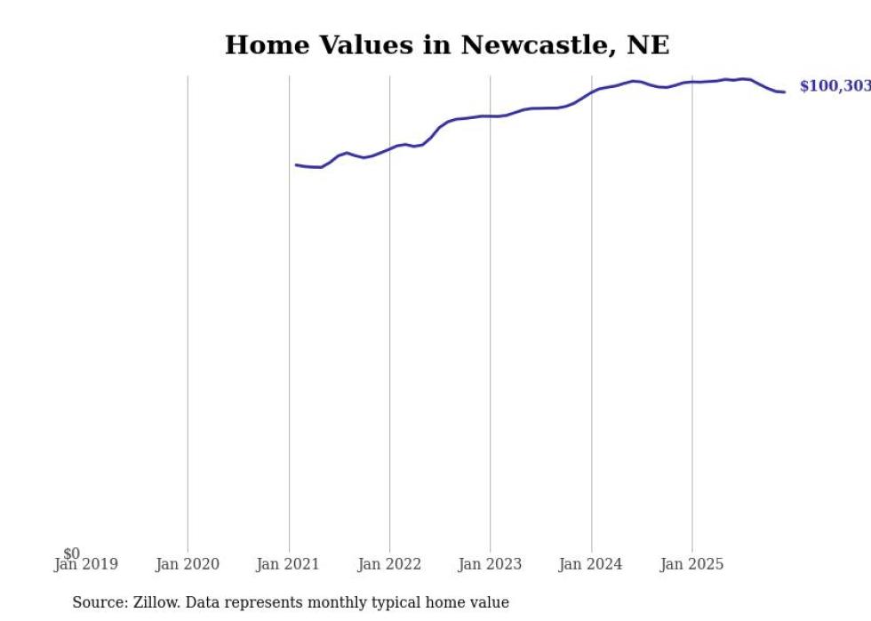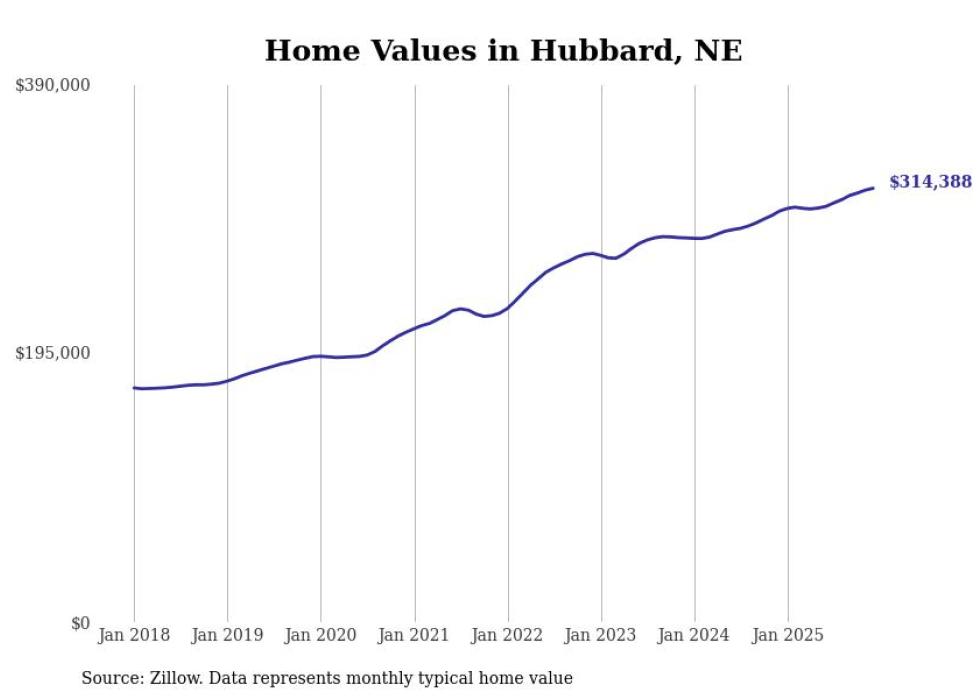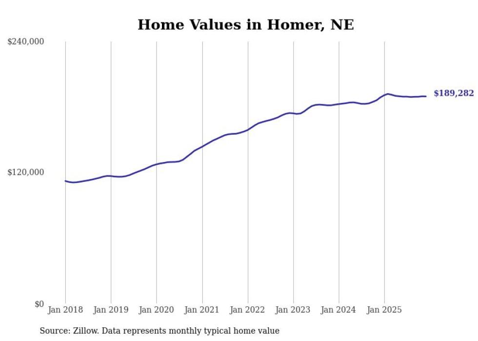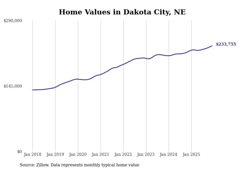 Stacker compiled a list of cities with the most expensive homes in the Sioux City, IA-NE-SD metro area using data from Zillow. Charts show the monthly typical home value since January 2018.