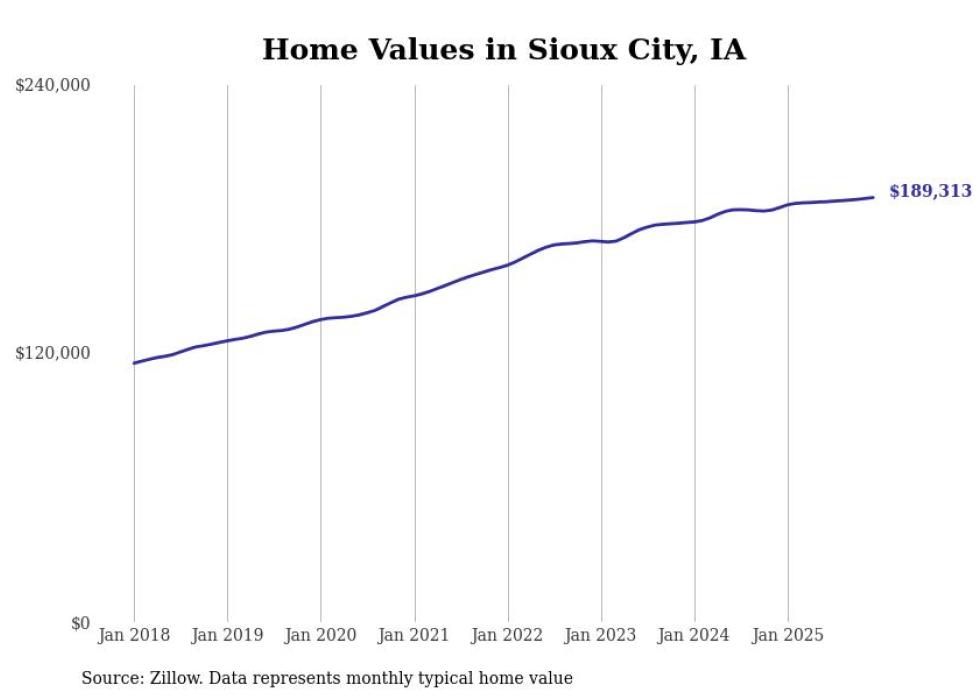 Cities with the fastest-growing home prices in the Sioux City metro area