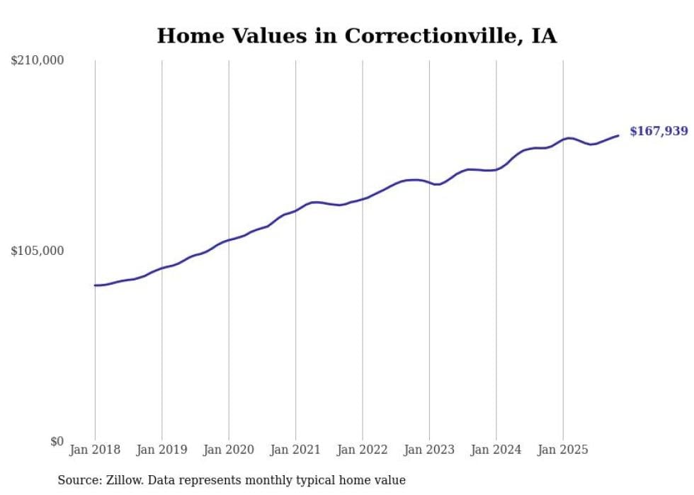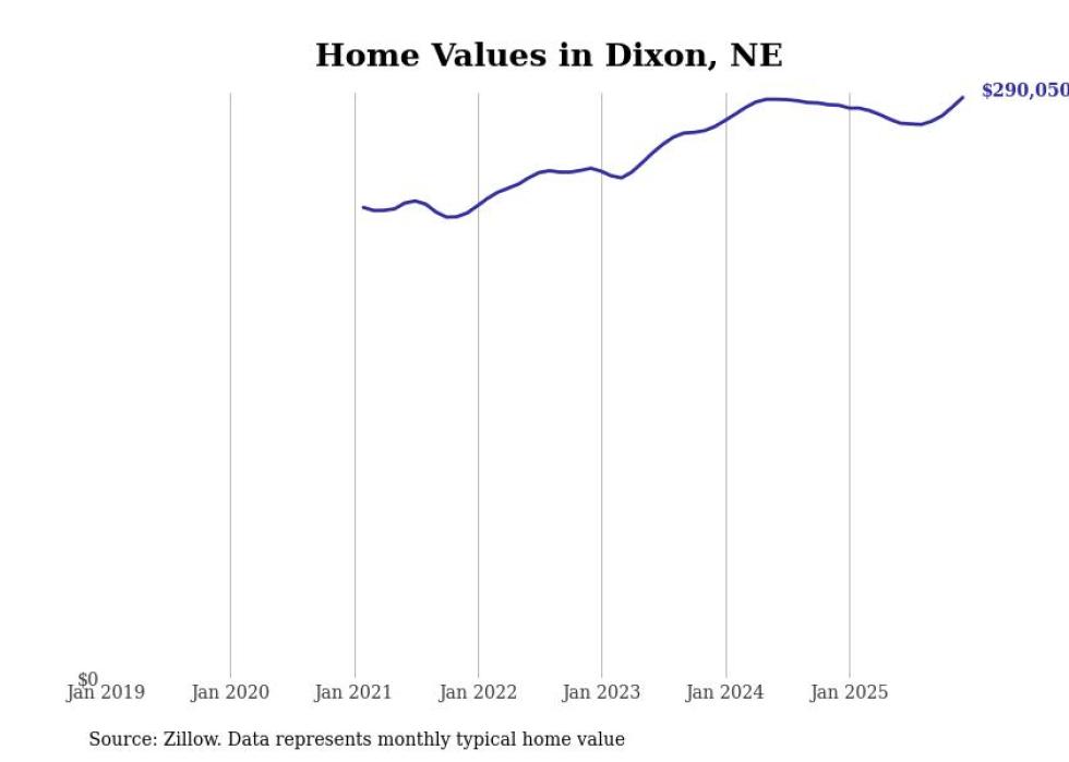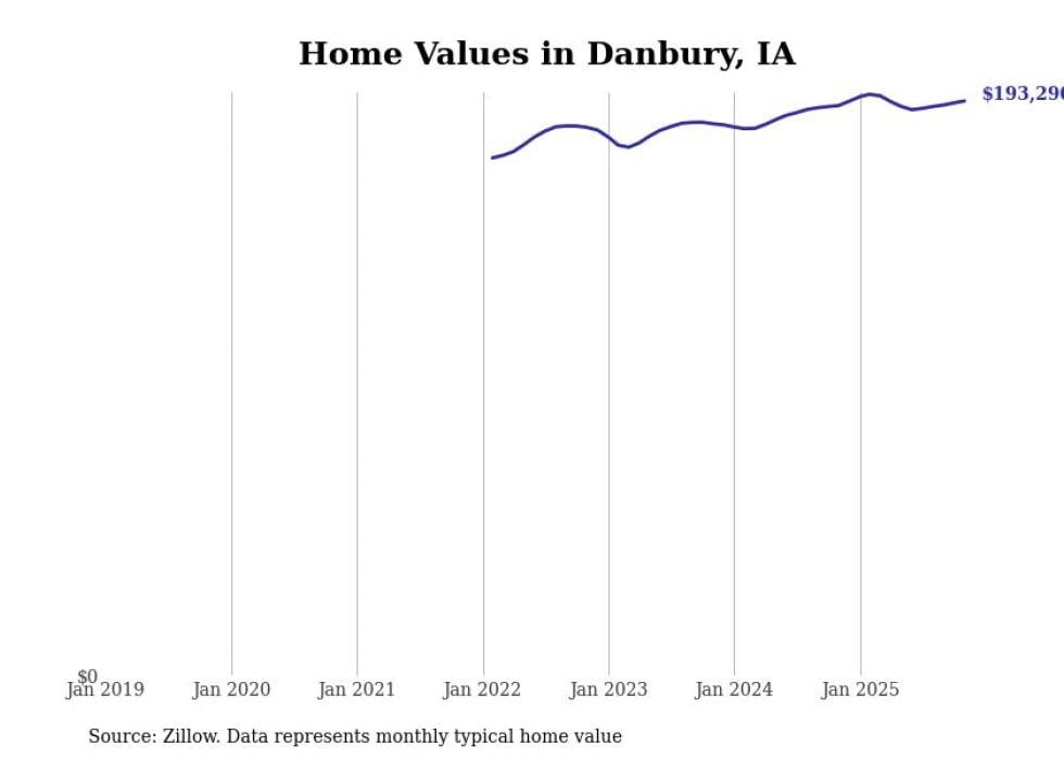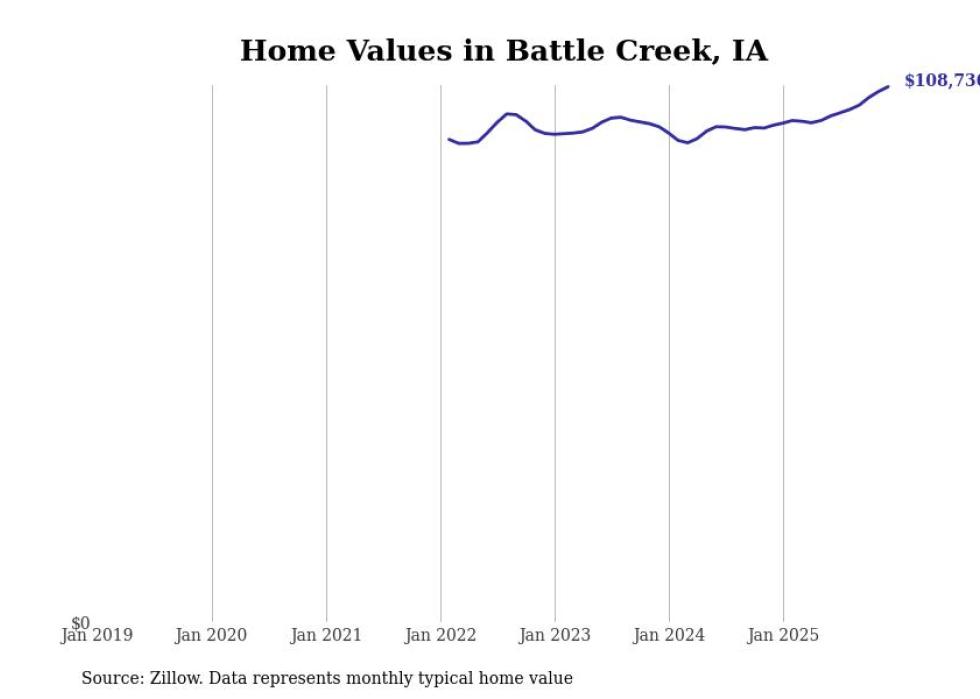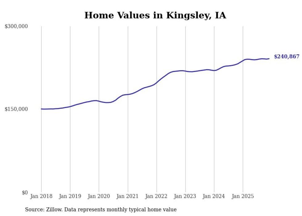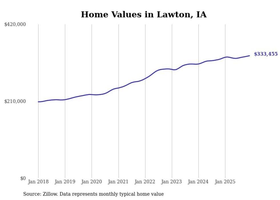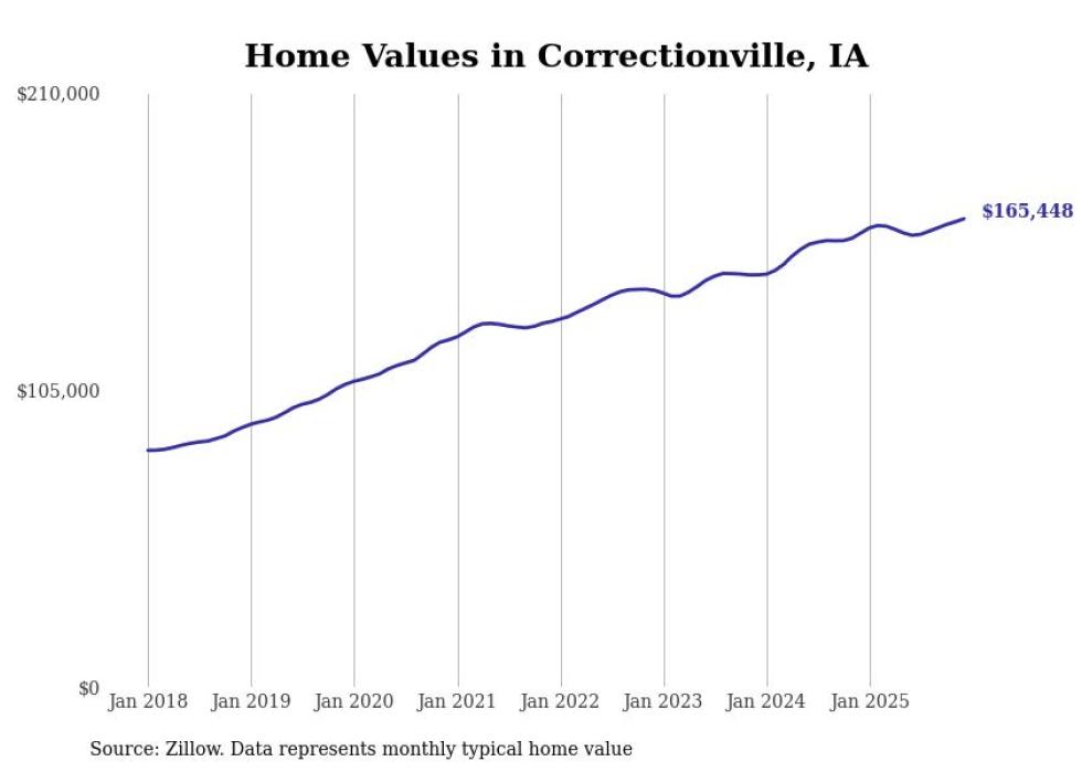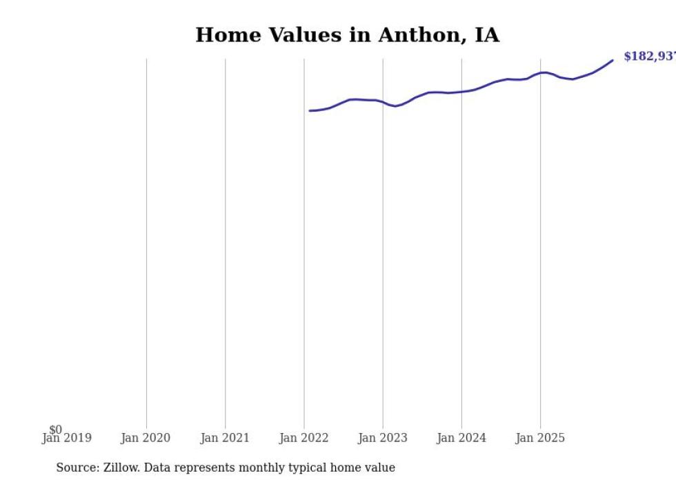 Stacker compiled a list of cities with the most expensive homes in the Sioux City metro area using data from Zillow. Charts show the monthly typical home value since January 2018. Data was available for 31 cities and towns.