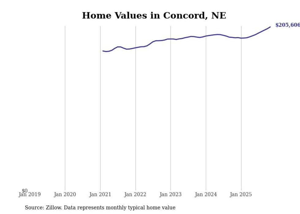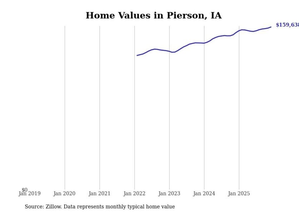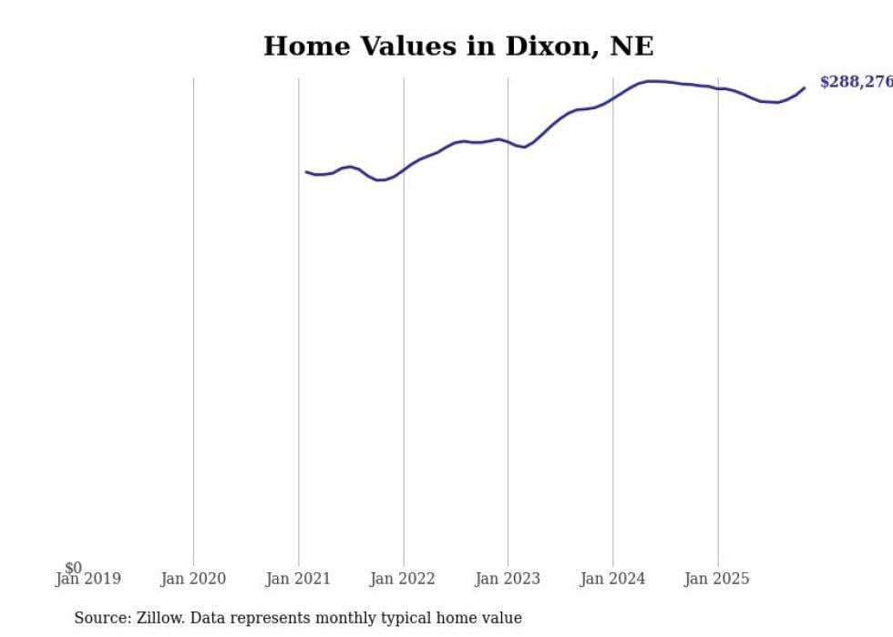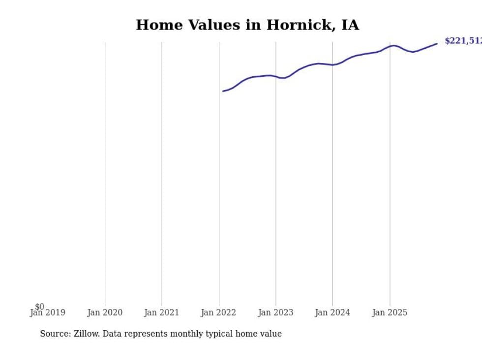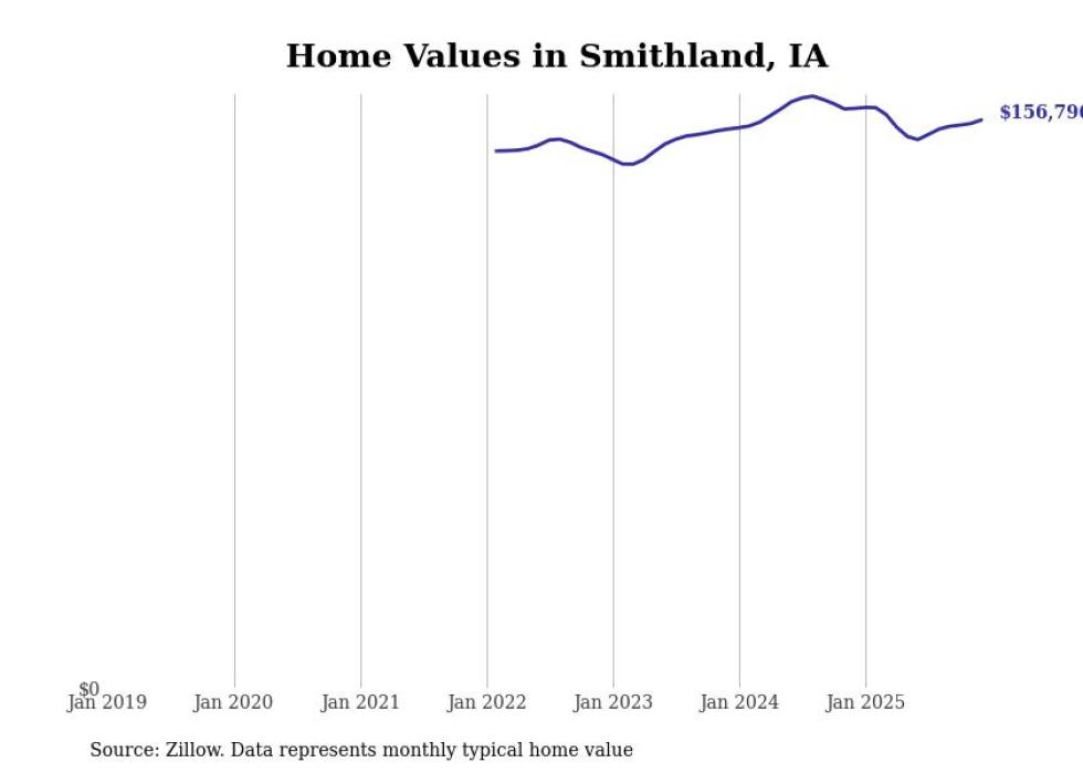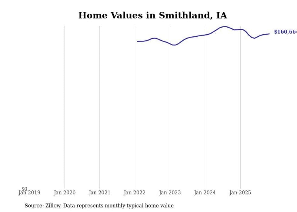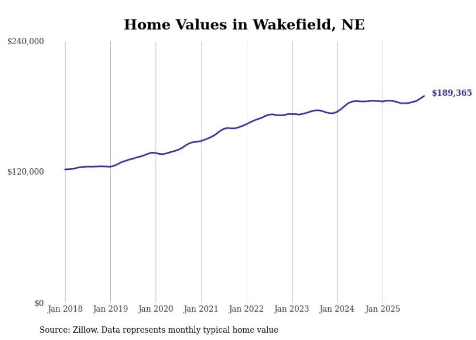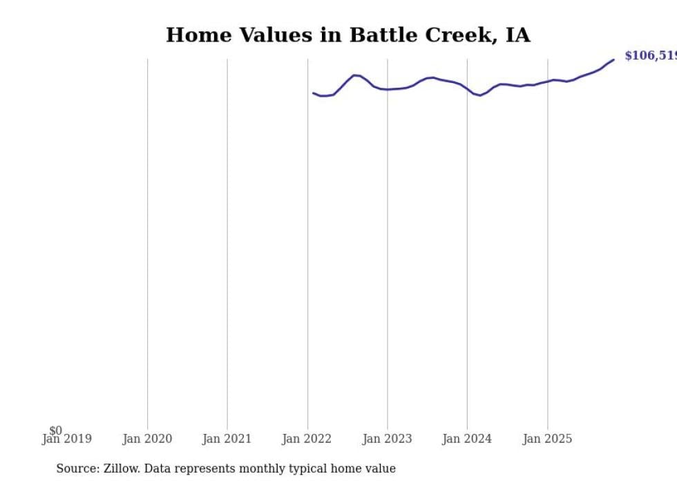 Stacker compiled a list of cities with the most expensive homes in the Sioux City metro area using data from Zillow. Charts show the monthly typical home value since January 2018. Data was available for 31 cities and towns.