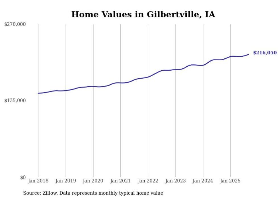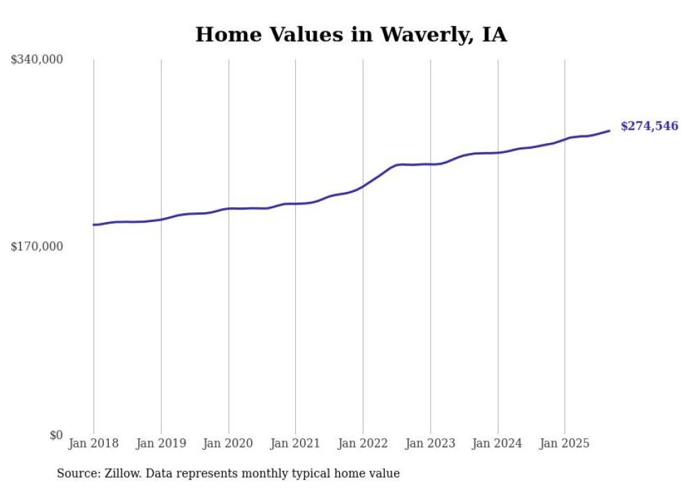 Stacker compiled a list of cities with the most expensive homes in the Waterloo-Cedar Falls, IA metro area using data from Zillow. Charts show the monthly typical home value since January 2018.